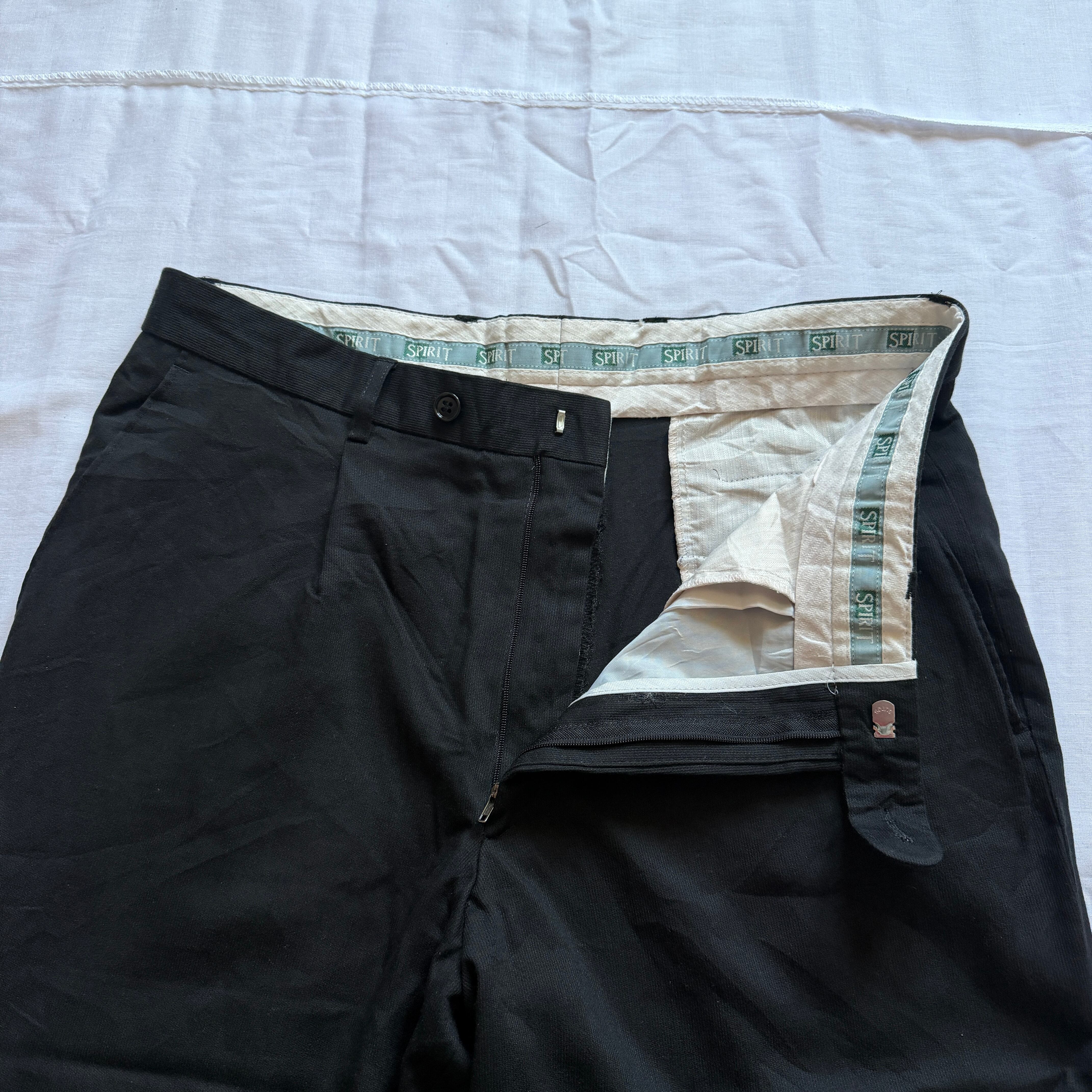 1990's "SPIRIT" wide slacks viscose×polyester×wool black 'Germany' / 90年代 "スピリット" ワイドスラックス ビスコース×ポリエステル×ウール ブラック 'ドイツ企画' | mg −used clothing−