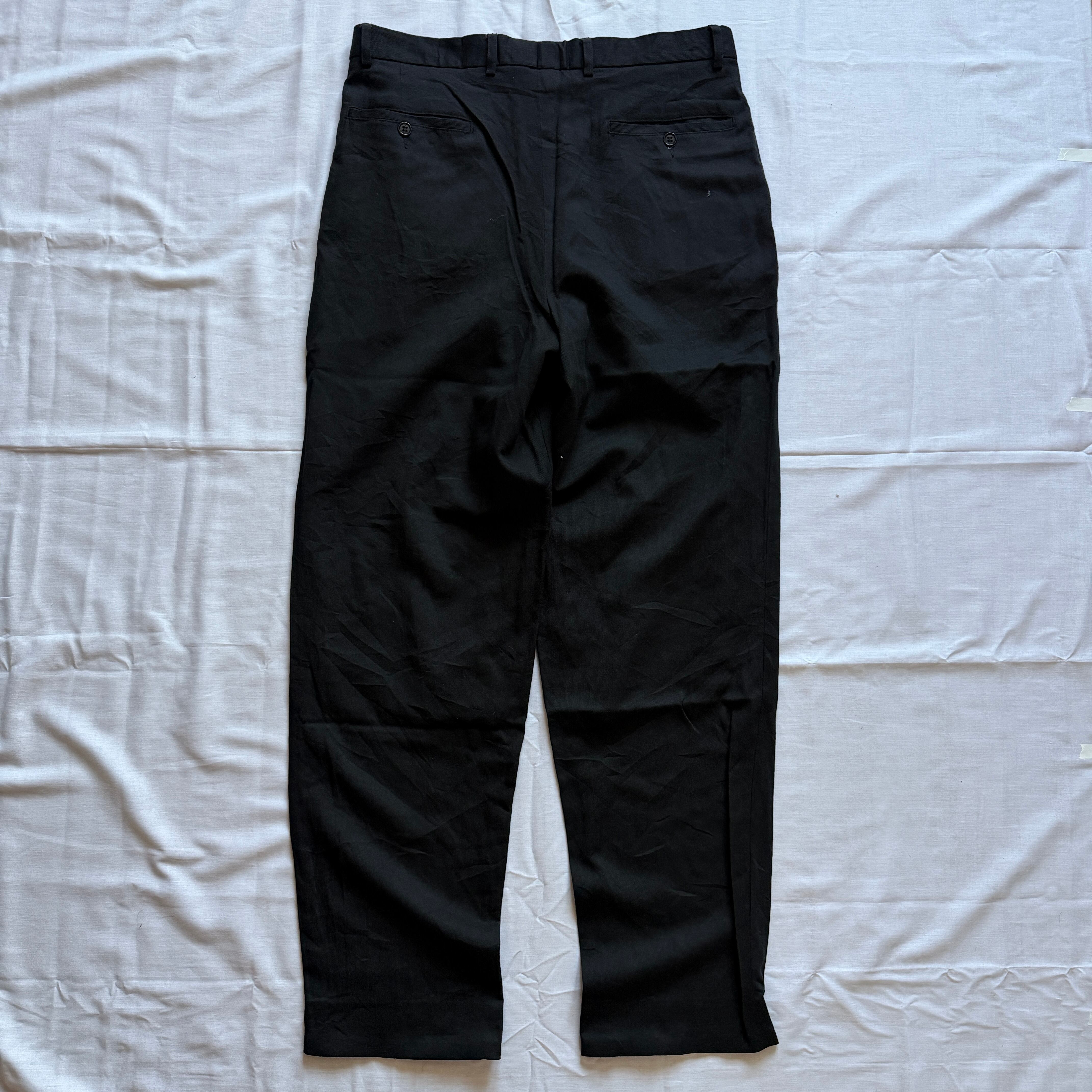 1990's "SPIRIT" wide slacks viscose×polyester×wool black 'Germany' / 90年代 "スピリット" ワイドスラックス ビスコース×ポリエステル×ウール ブラック 'ドイツ企画'