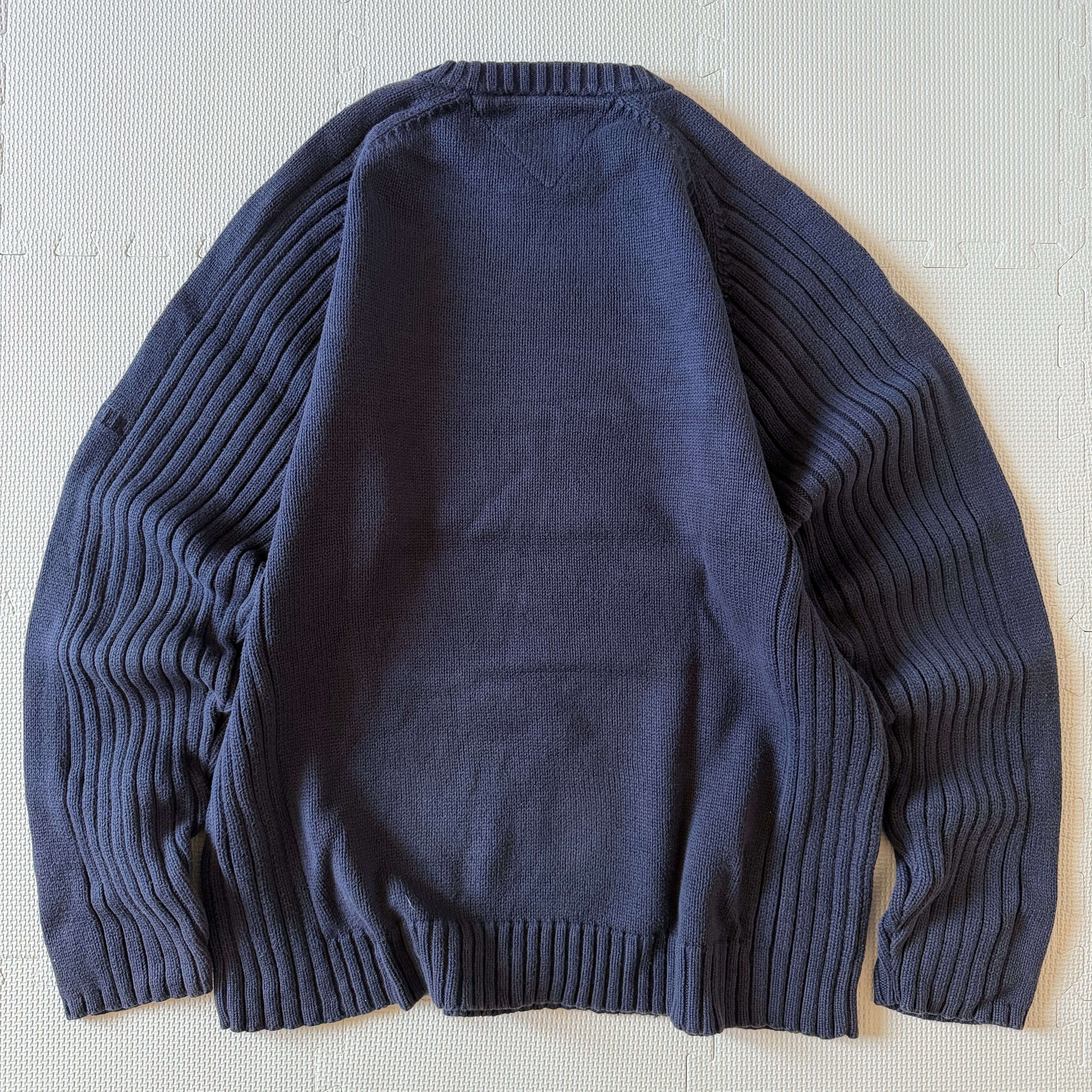Made in India 1990's~ "TOMMY JEANS" cotton knit sweater 'raglan' navy L / インド製 90年代〜 "トミージーンズ" コットンニット セーター ネイビー 'ラグラン'