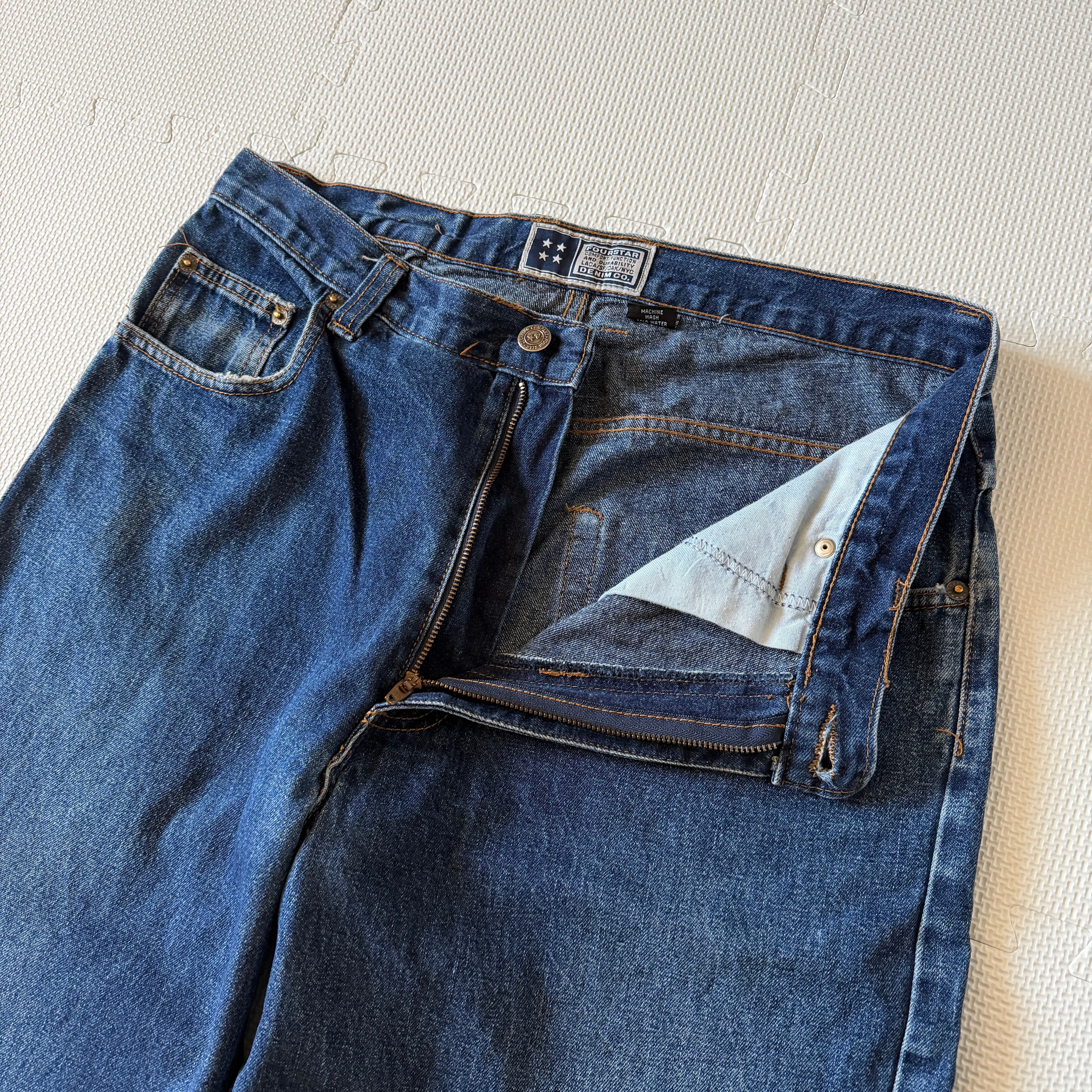 Made in USA 1990's "FOURSTAR" denim pants 「wide×buggy」 32 'old skate' / アメリカ製 90年代 "フォースター" デニム パンツ 「ワイド×バギー」 'オールドスケート' '濃紺'