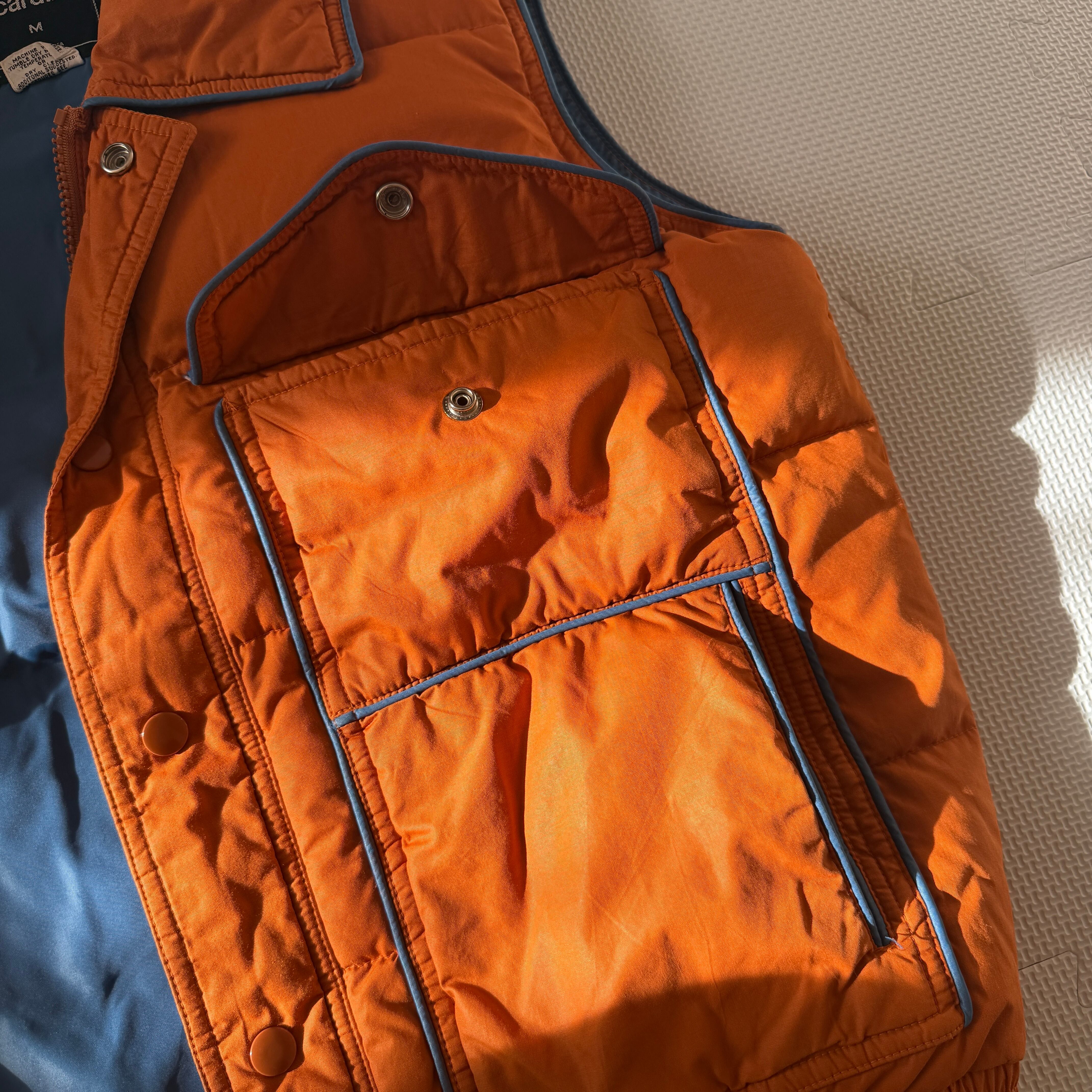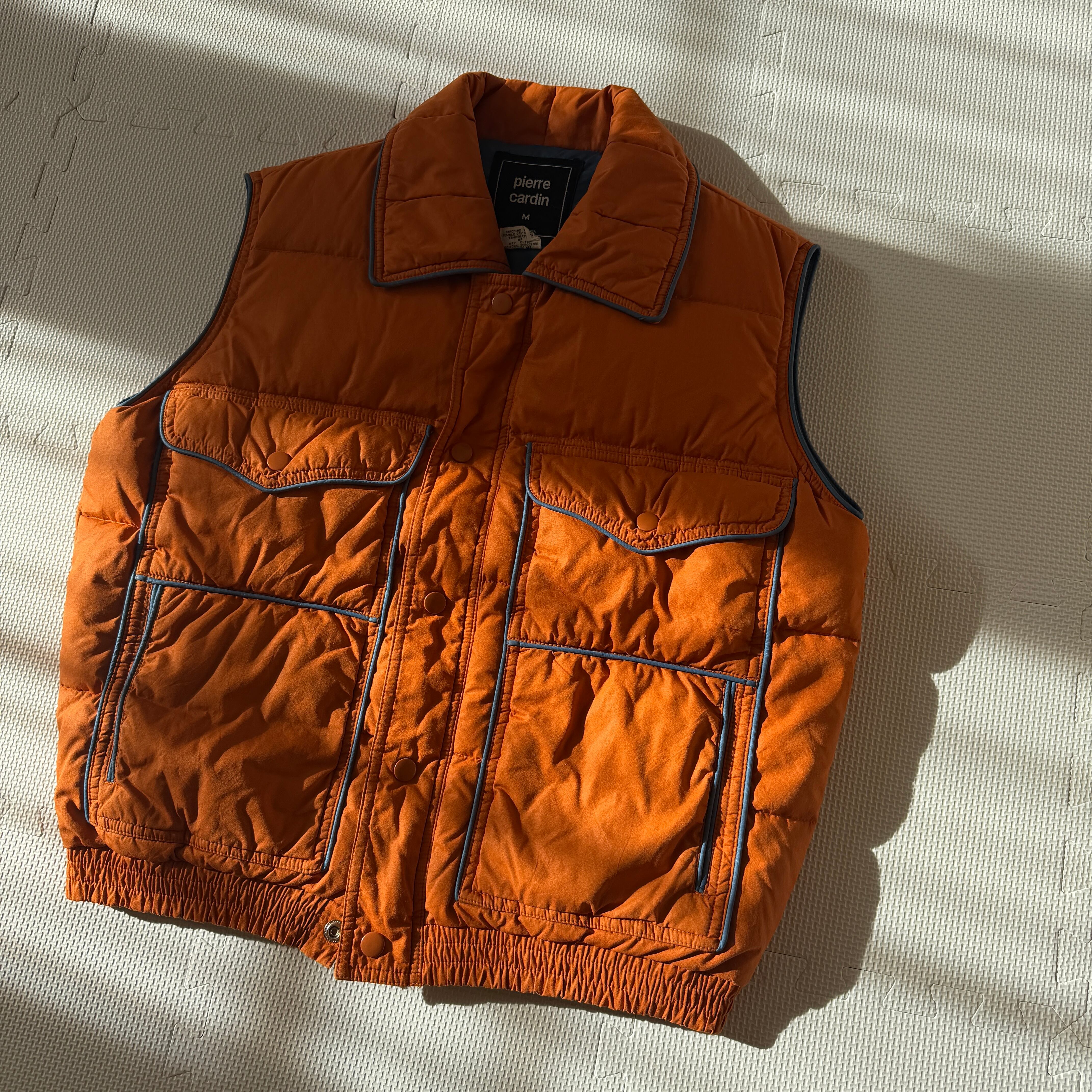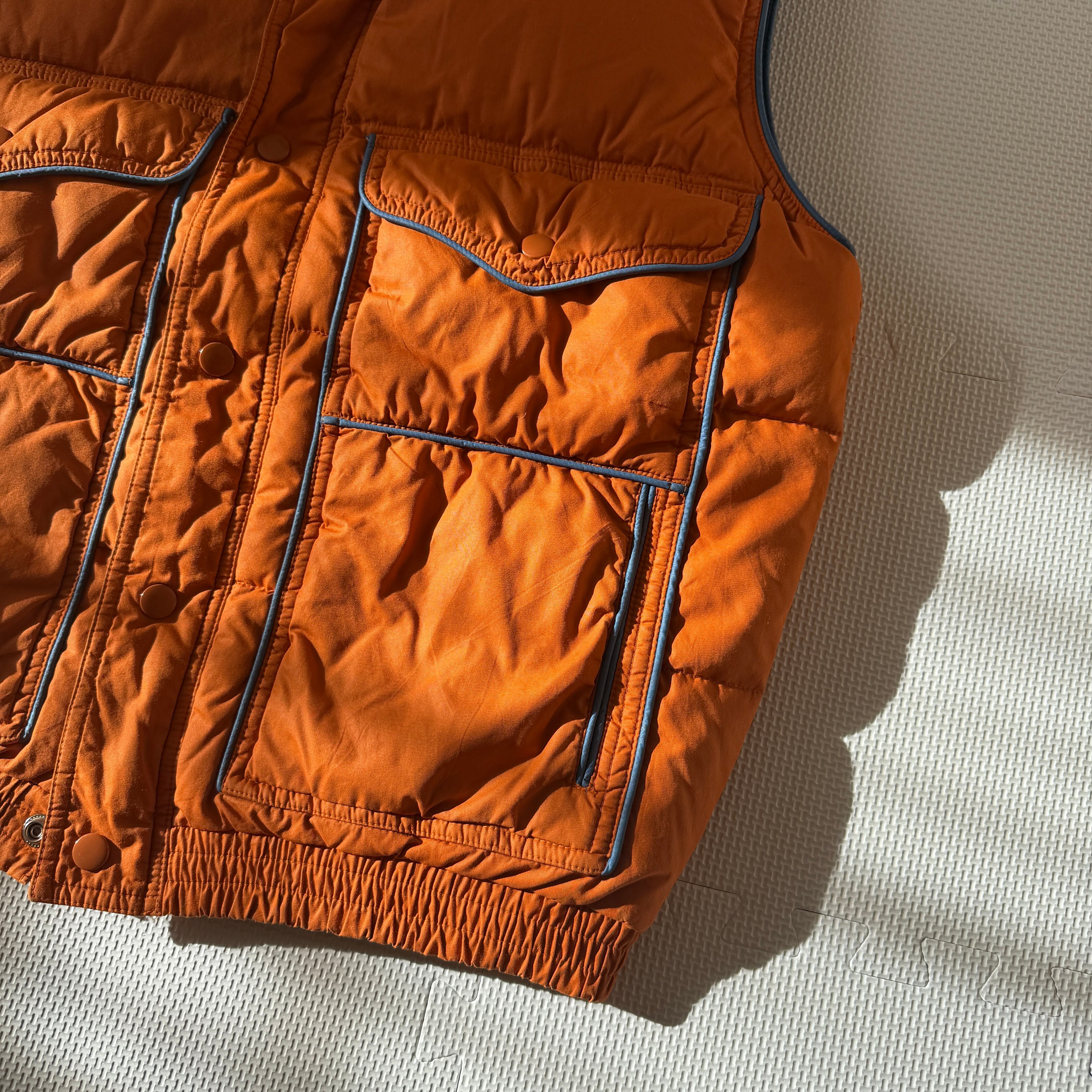 Made in Korea 1970's~ "Pierre Cardin" nylon down vest 「orange×blue」 / 韓国製 70年代〜 "ピエール・カルダン" ナイロンダウンベスト 「オレンジ×ブルー」