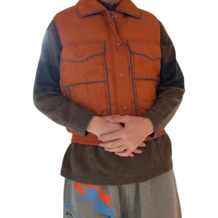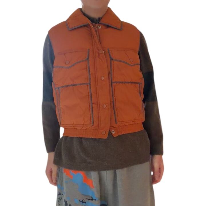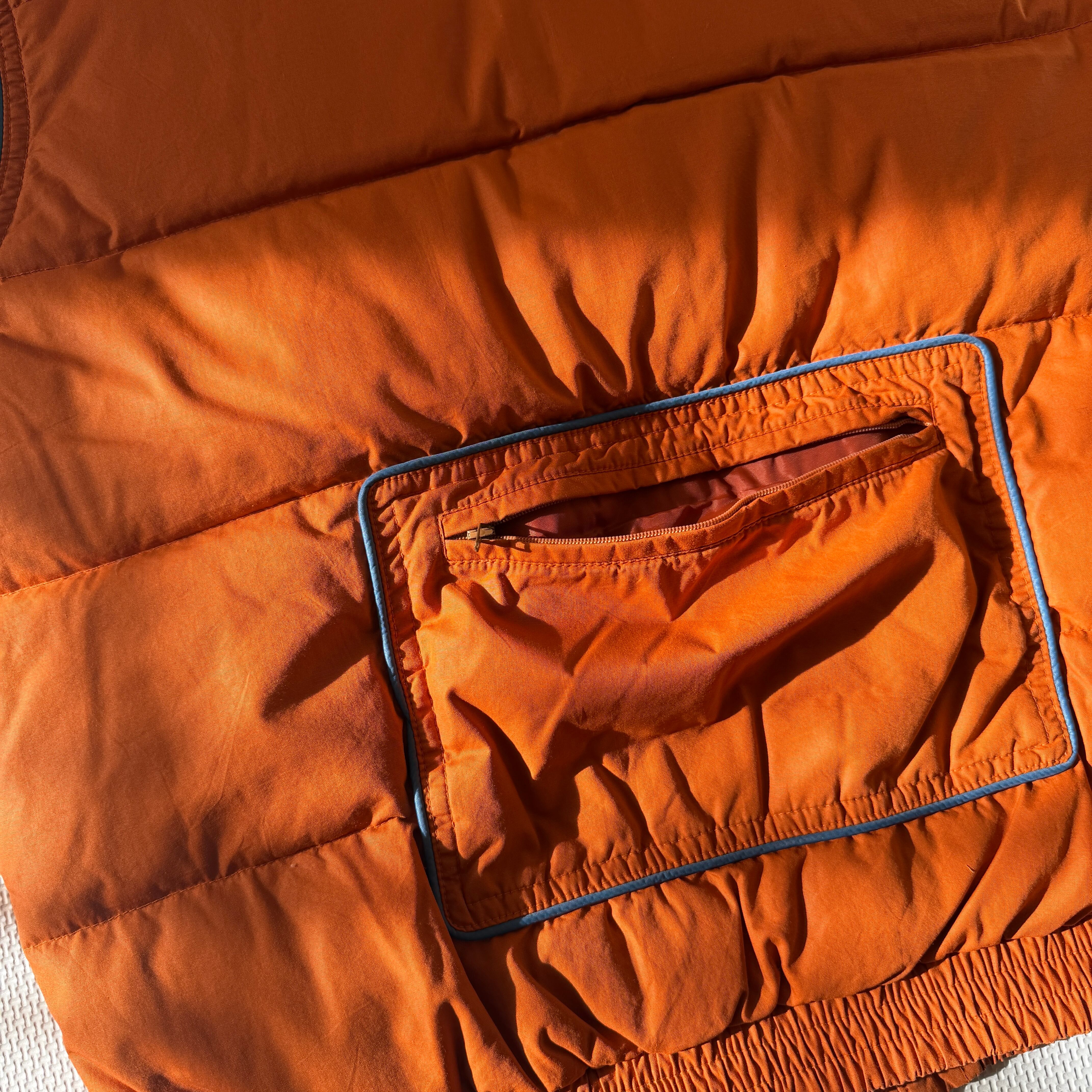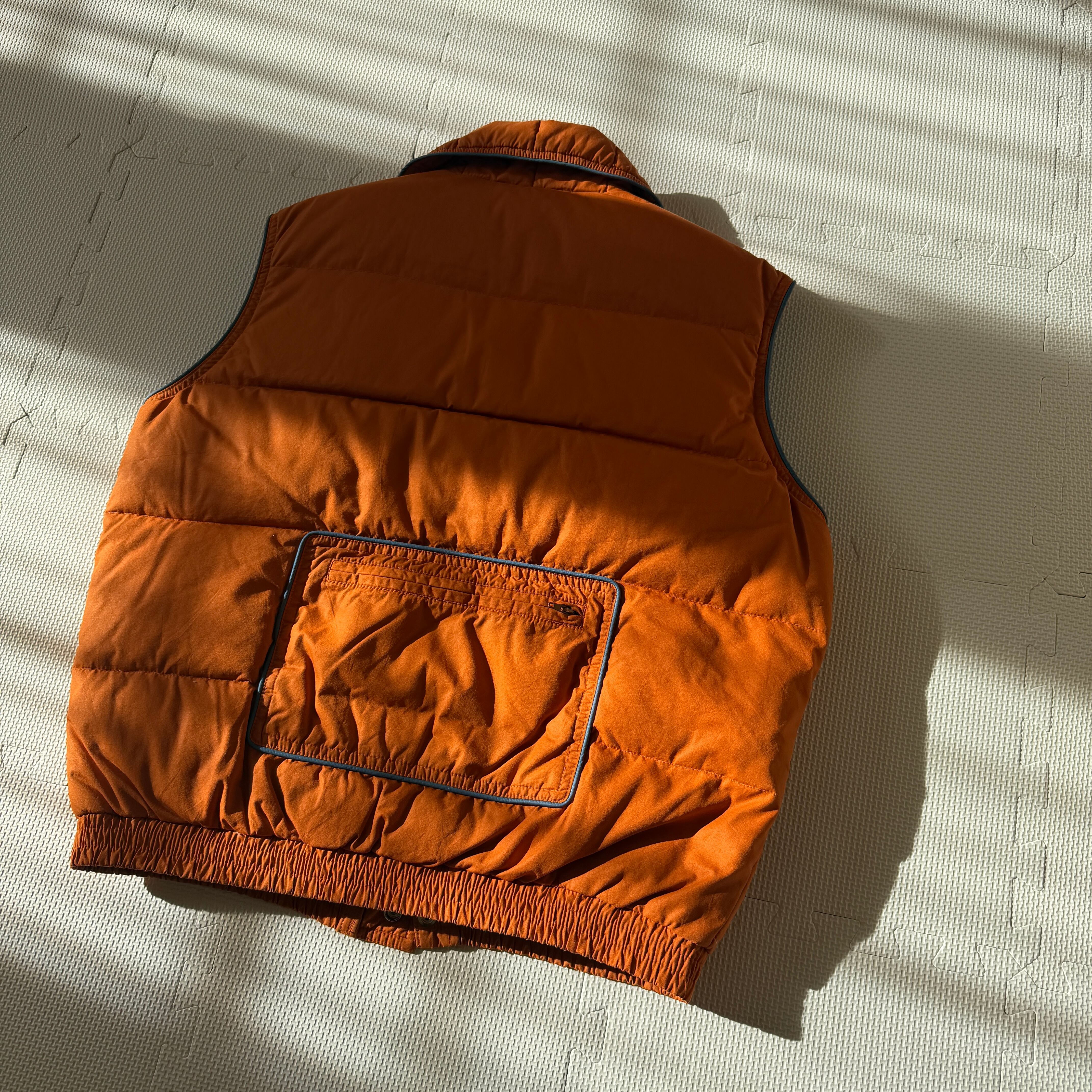 Made in Korea 1970's~ "Pierre Cardin" nylon down vest 「orange×blue」 / 韓国製 70年代〜 "ピエール・カルダン" ナイロンダウンベスト 「オレンジ×ブルー」