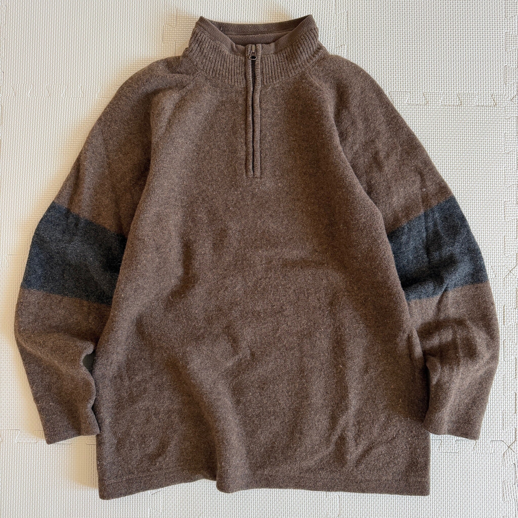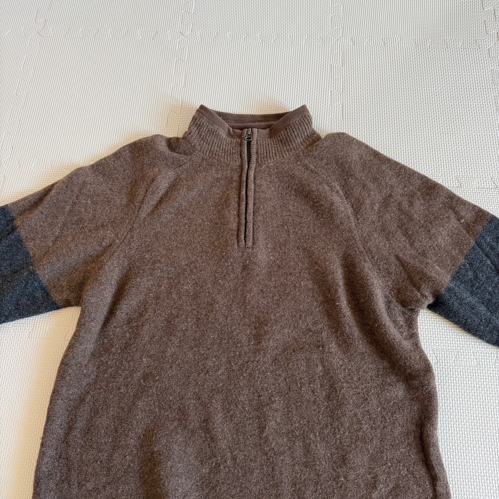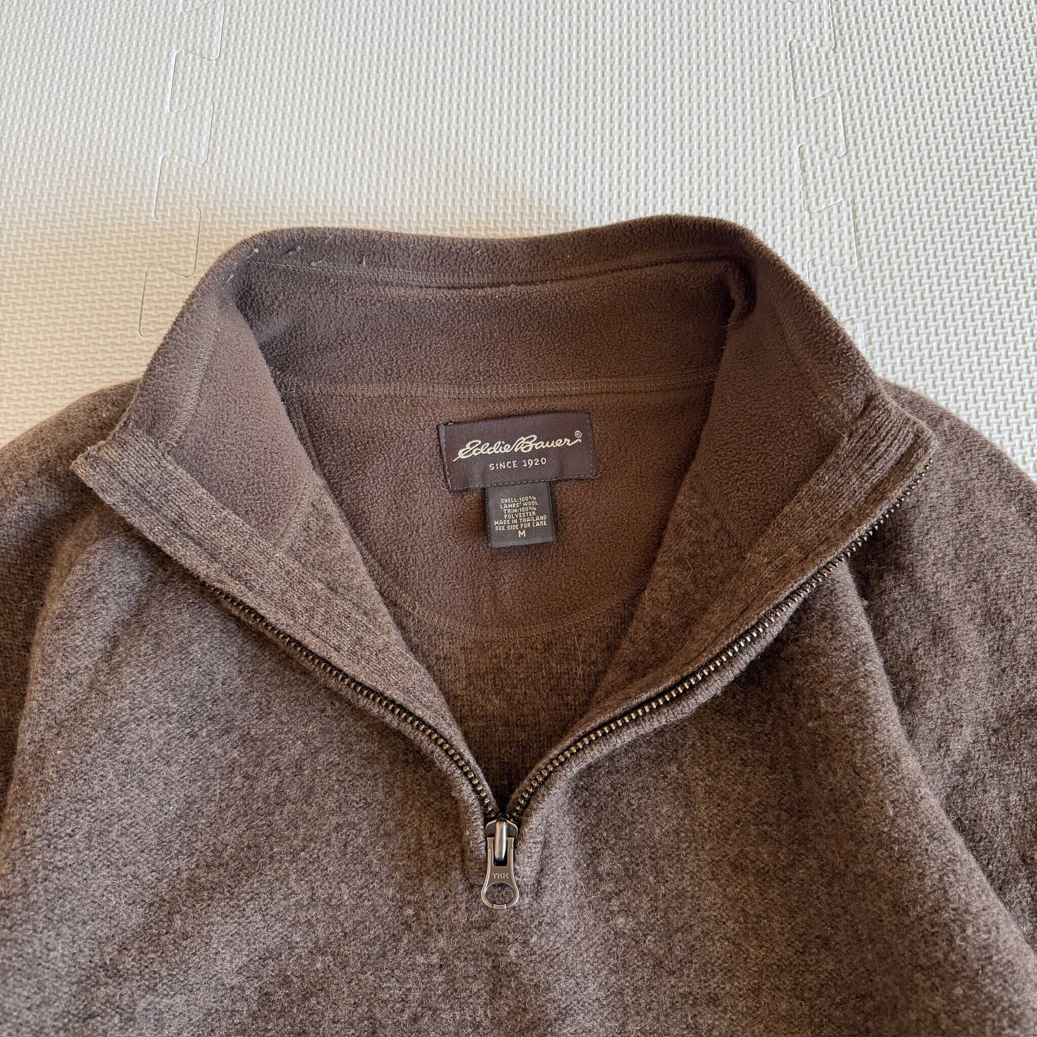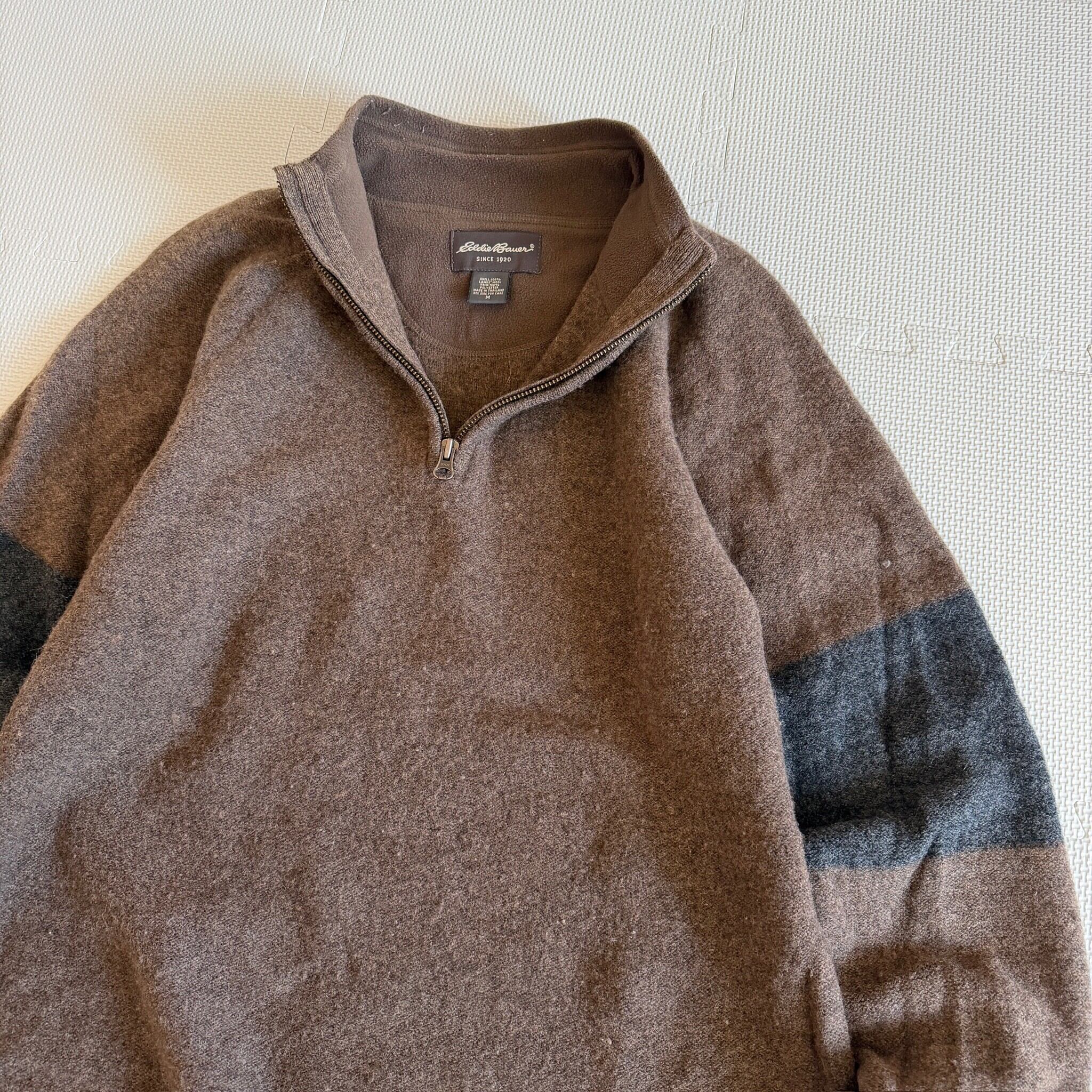 1990's~ "Eddie Bauer" half zip knit sweater 「LAMBS' WOOL」 brown 'border' M / 90年代〜 "エディーバウアー" ハーフジップ ニット セーター ブラウン ボーダー 「ラムウール」