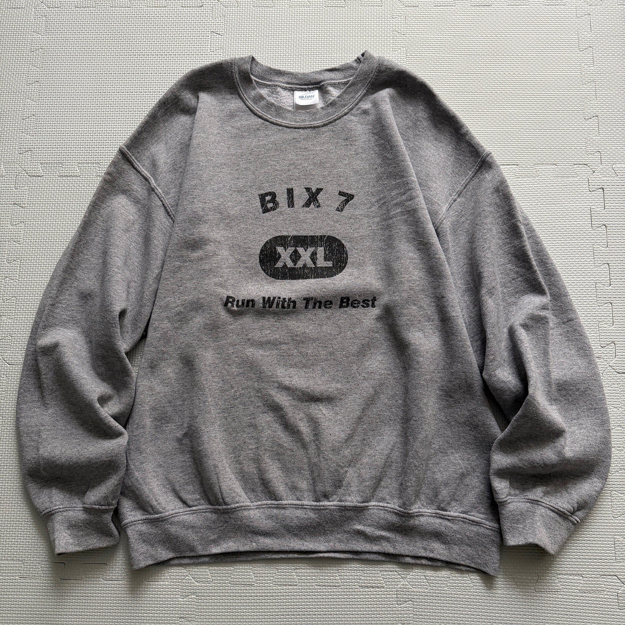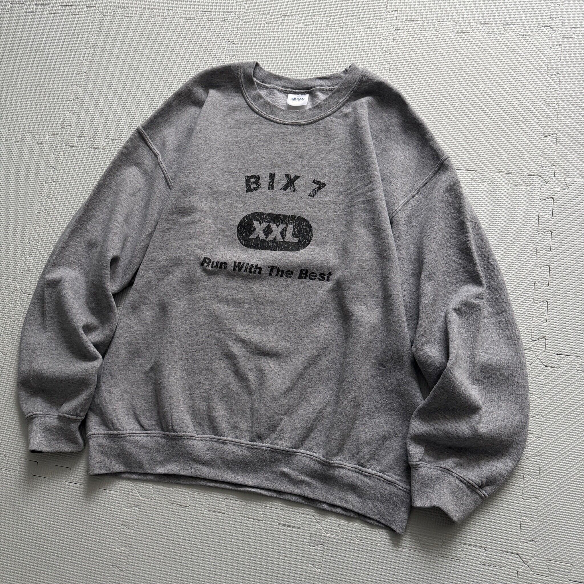 2000's "GILDAN" sweat trainer「Bix7×Run With The Best」 gray L / 2000年代 "ギルダン" スウェット トレーナー 「ビックス7×ランウィズザベスト」 グレー