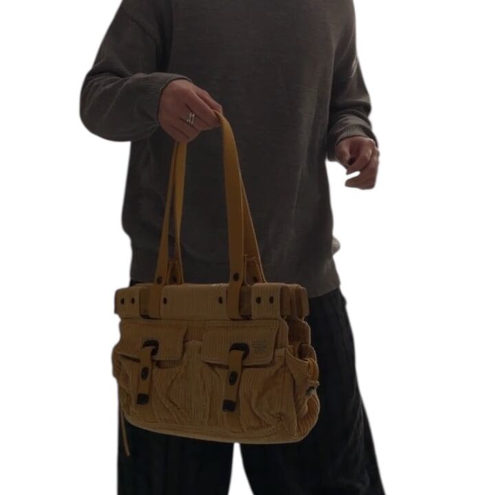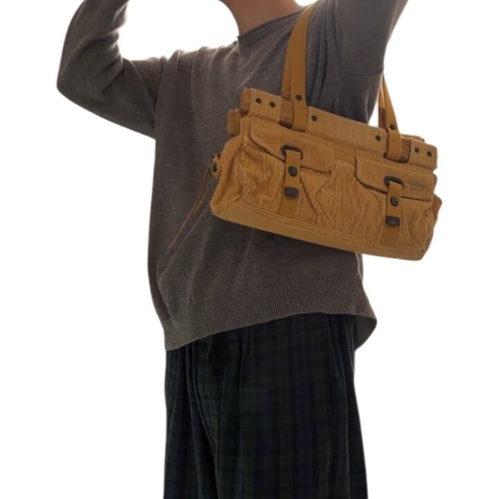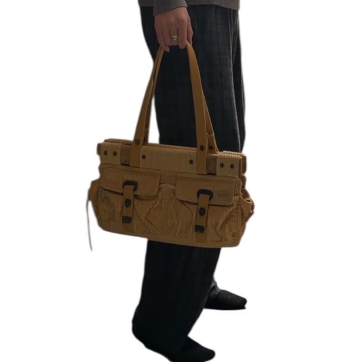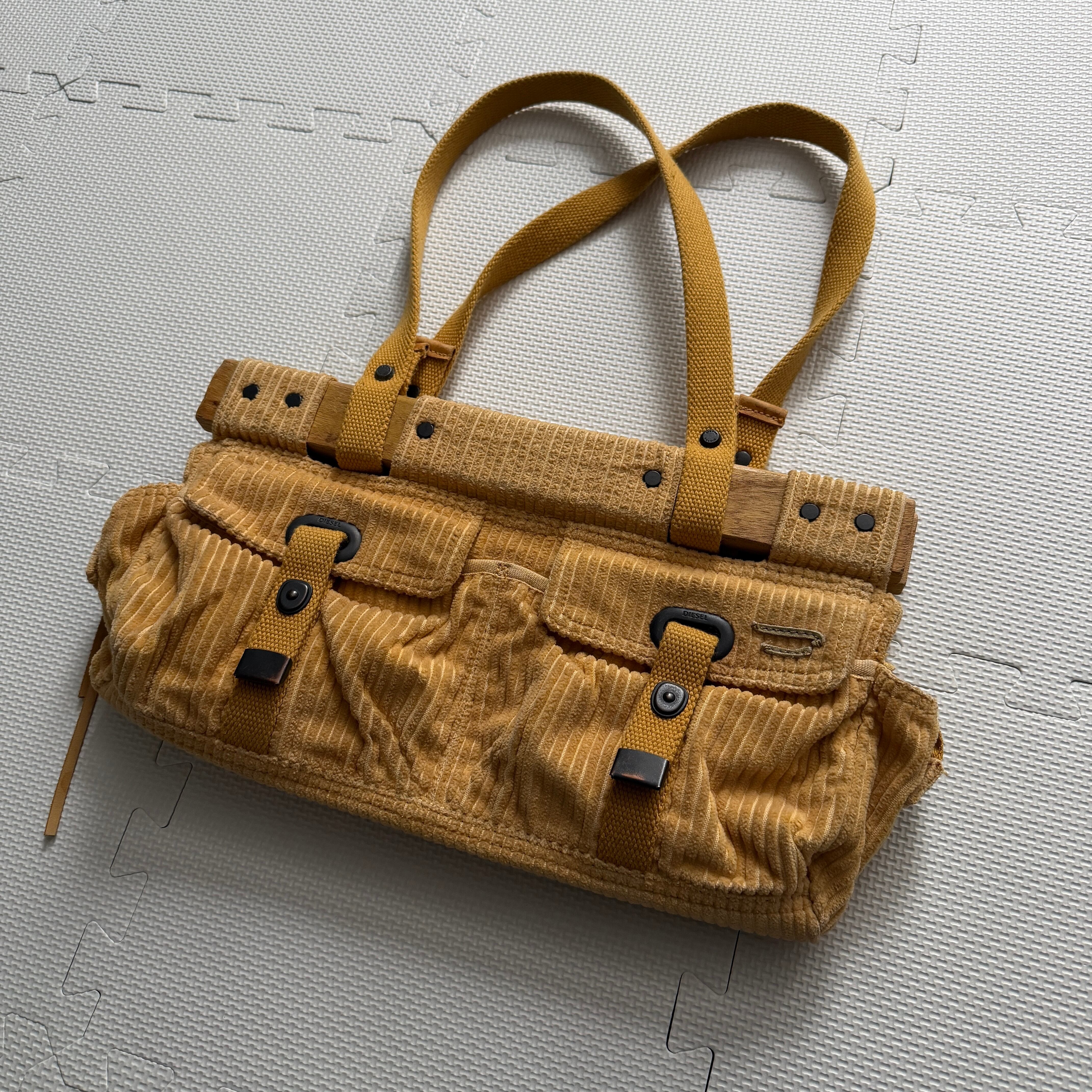 2000's "DIESEL" hand bag 「wood×corduroy」 'SPARE PARTS' Archive Piece / 2000年代 "ディーゼル" ハンドバッグ 「ウッド×コーデュロイ」 'スペア・パーツ' アーカイブピース