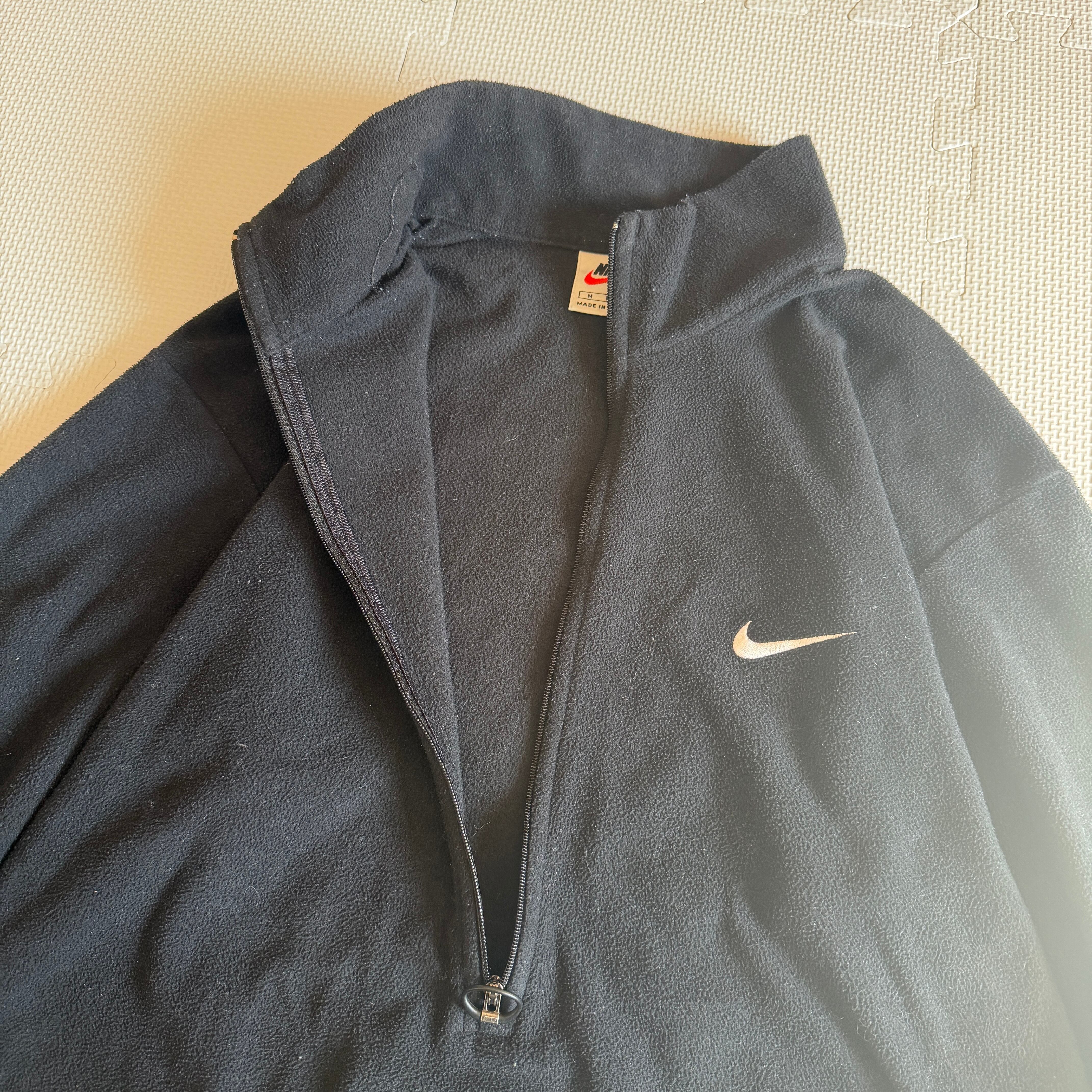 1990's "OLD NIKE" fleece jacket 「H&Z???」 black 'SWOOSH' / 90年代 "オールドナイキ" フリースジャケット 「ハーフジップ???」 ブラック 'スウッシュ' 「銀タグ」
