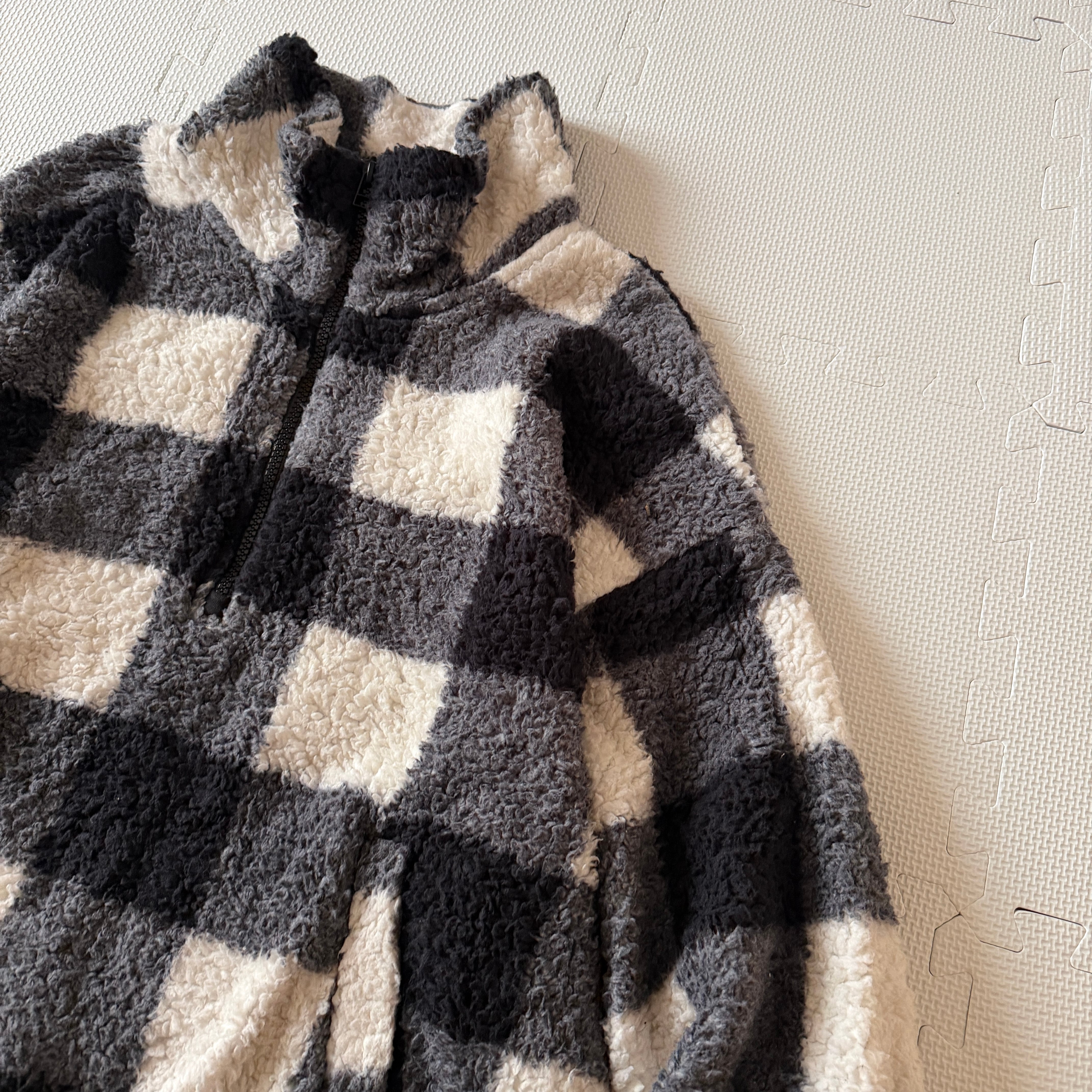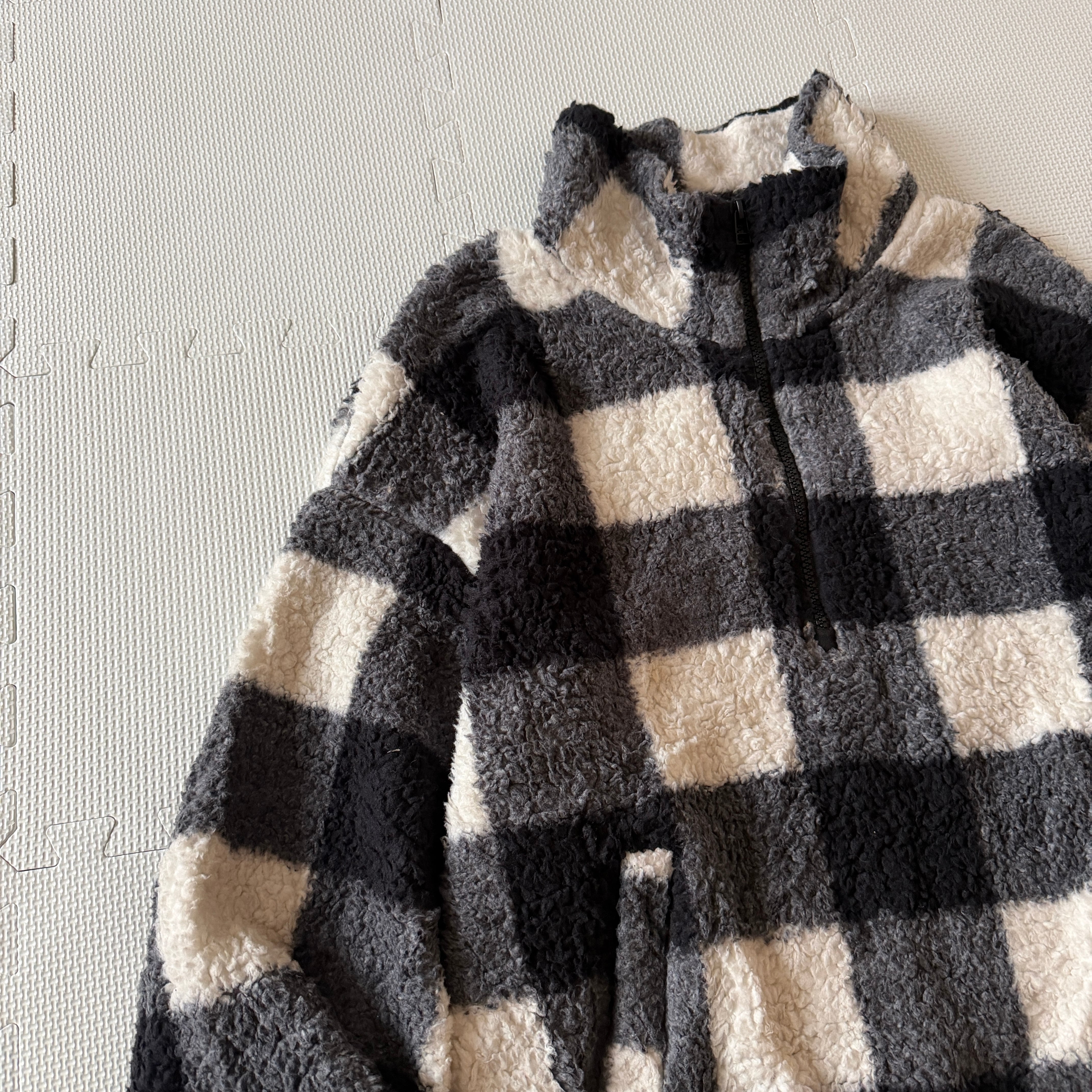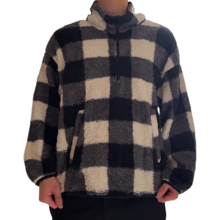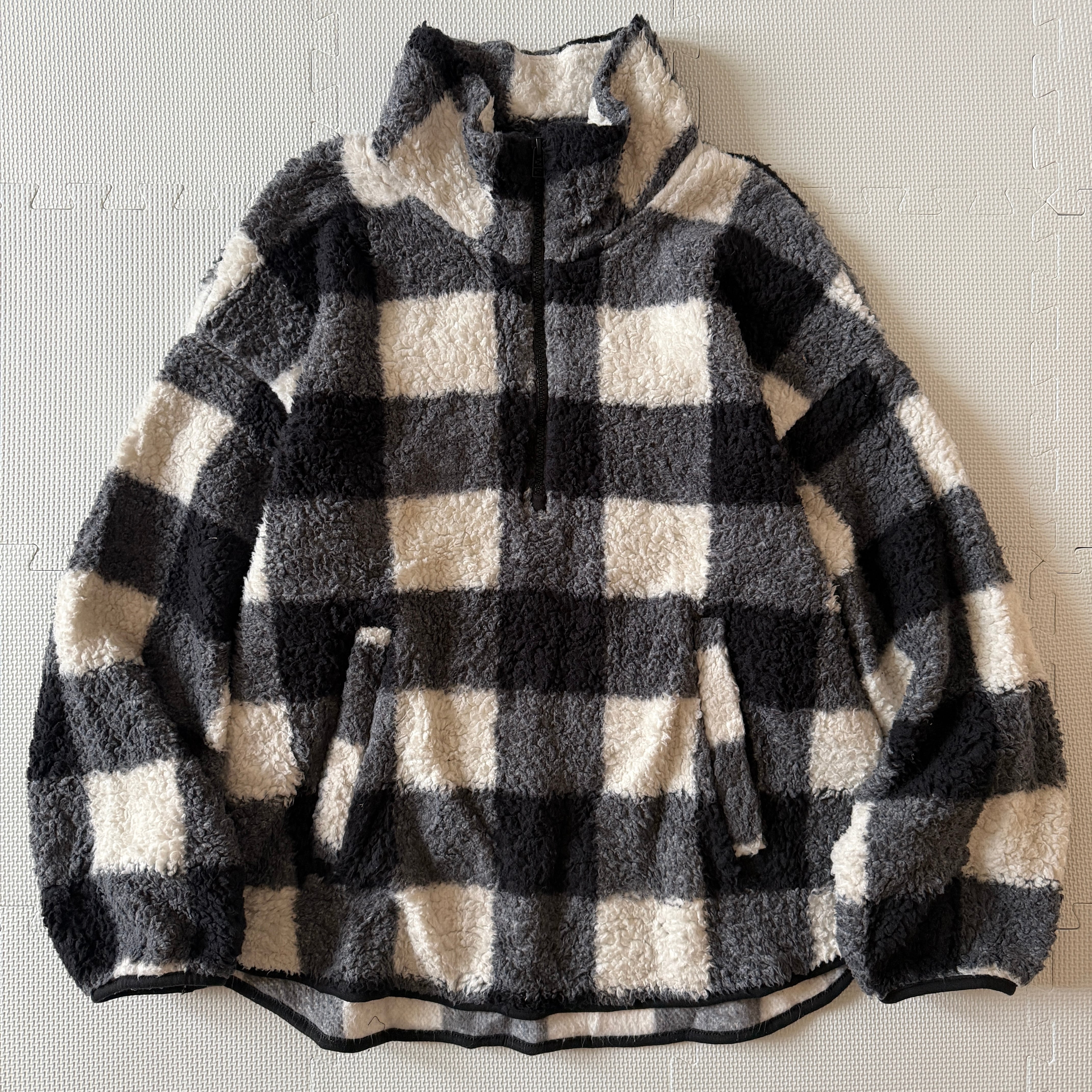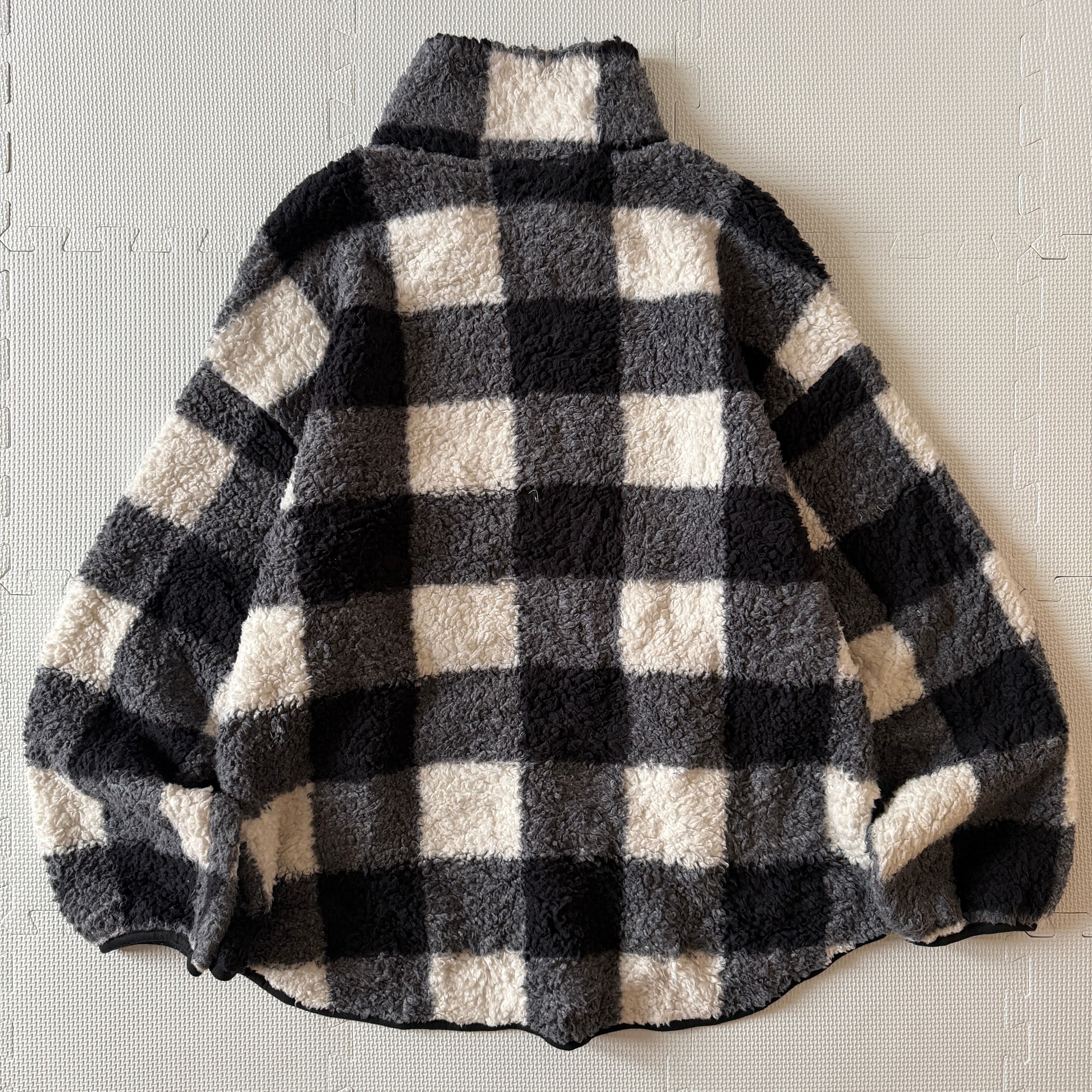 2021's "OLDNAVY" H&Z fleece jacket 「Buffalo Check」「black×white」 / 2021年6月製 "オールドネイビー" ハーフジップ フリースジャケット 「バッファローチェック」 「ブラック×ホワイト」