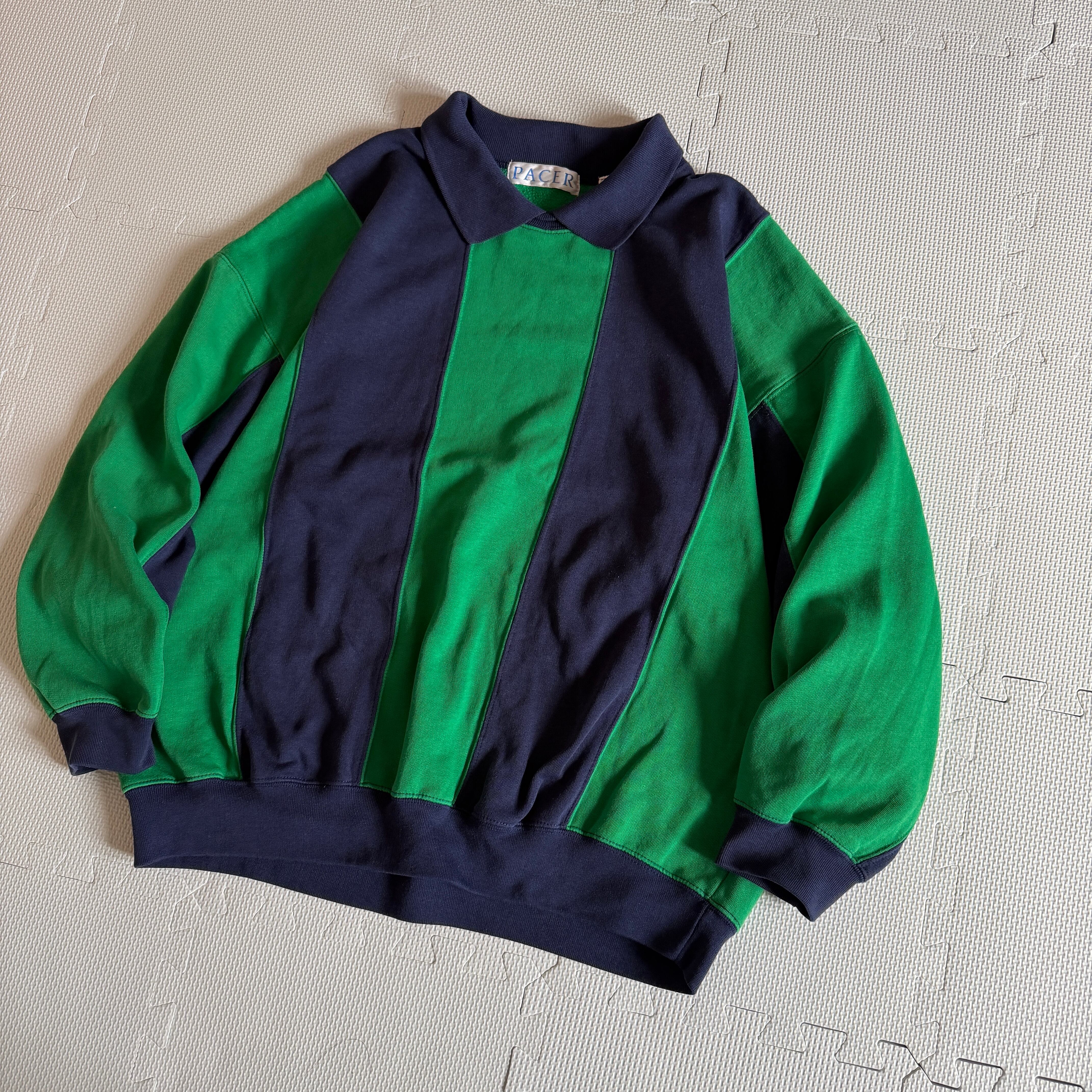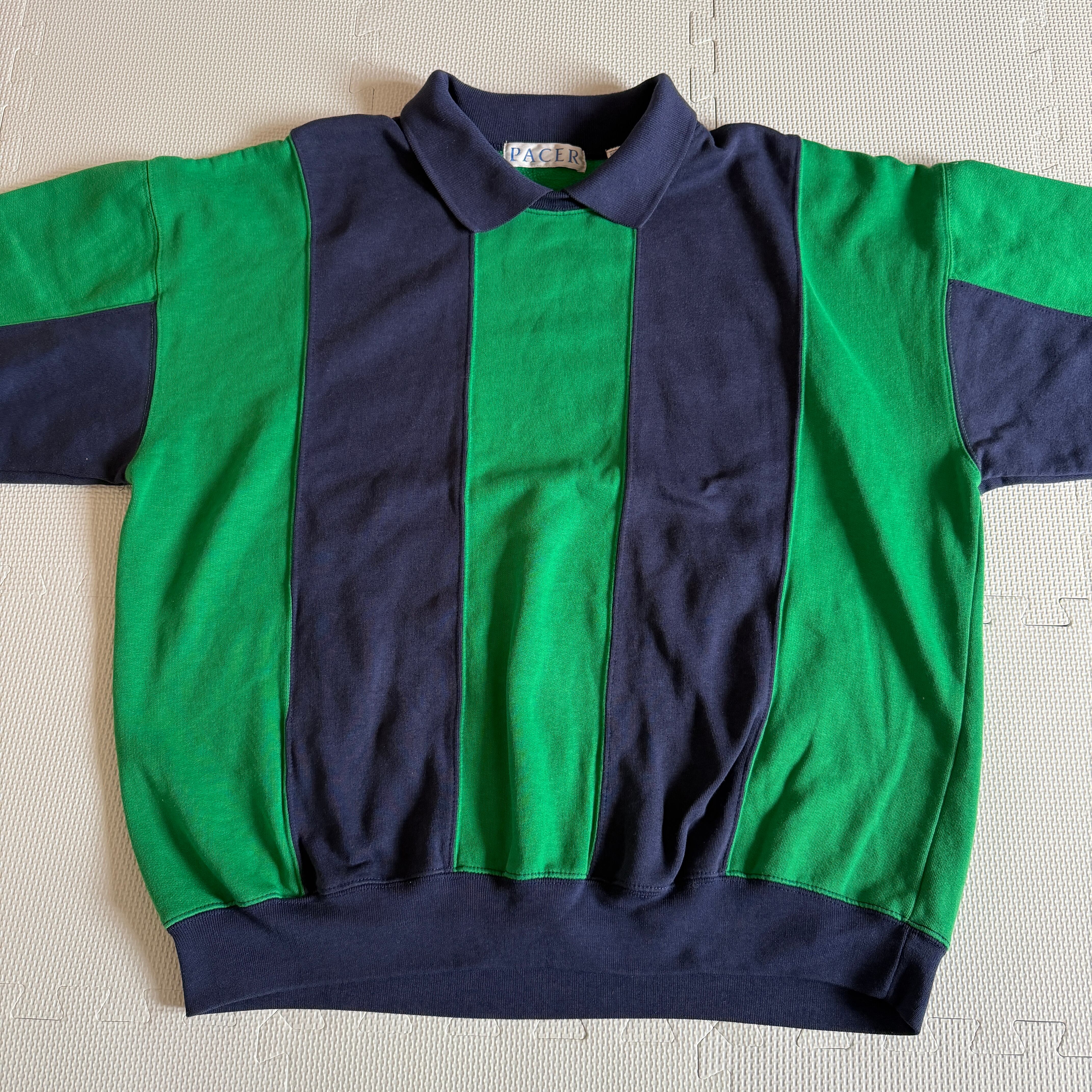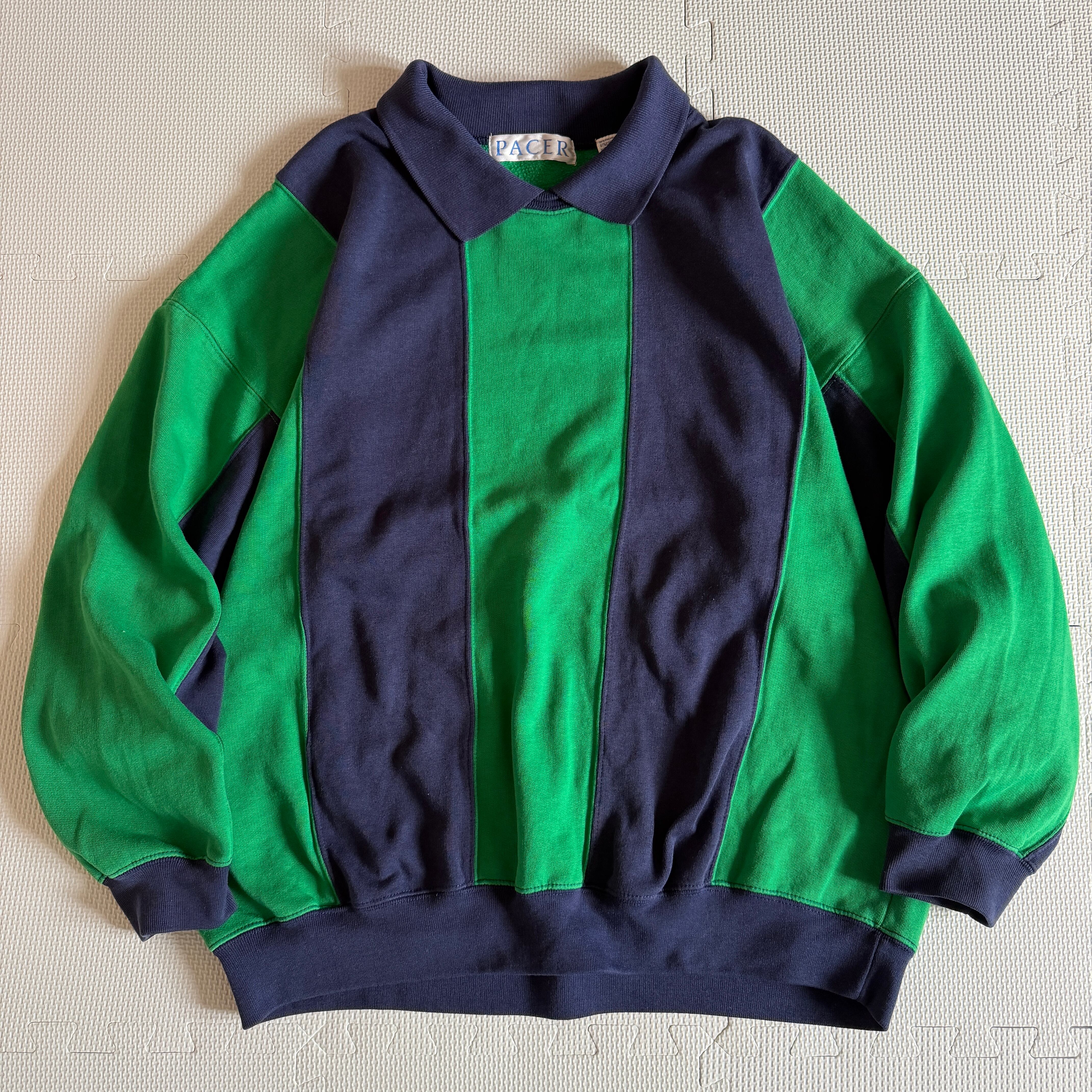 【Vintage】1980's~ "PACER" 2tone sweat trainer 「Design×Stripe」/ 80年代〜 "ペイサー" スウェット トレーナー 「デザイン×ストライプ」'ヴィンテージ'