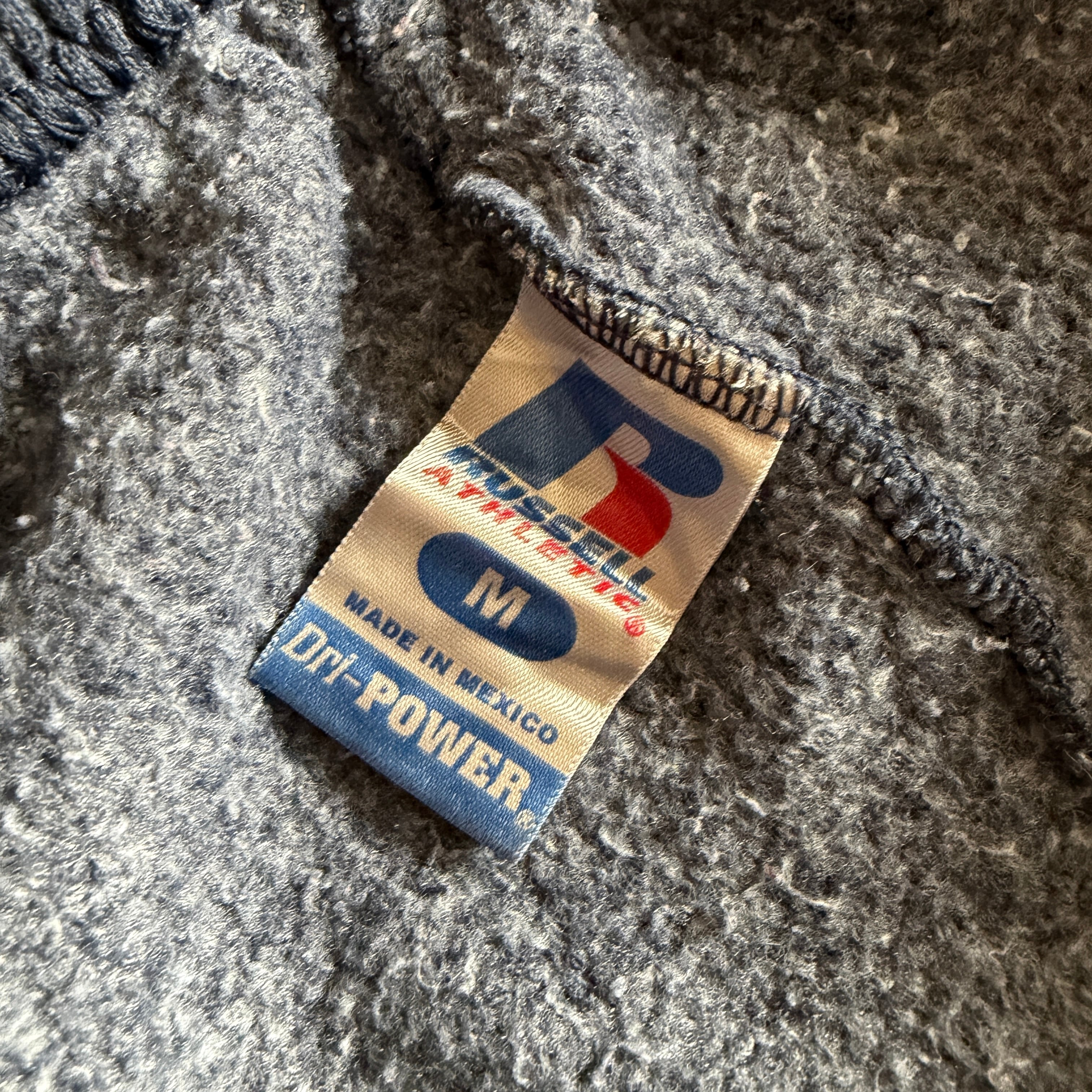 1902年創業、世界初のスウェットシャツを作ったと言われるラッセル社。2000年代は、アメリカ製からメキシコ製へと生産拠点が移行した過渡期にあたります。この時代は、90年代のクラシックなヘビーウェイトの仕様を継承しつつ、速乾性と耐久性を高めた「Dri-POWER」ラインが台頭。当時の米国のカレッジスポーツシーンや日常着として、人々の生活に深く根付いていたカルチャーの背景を感じさせる一着です。