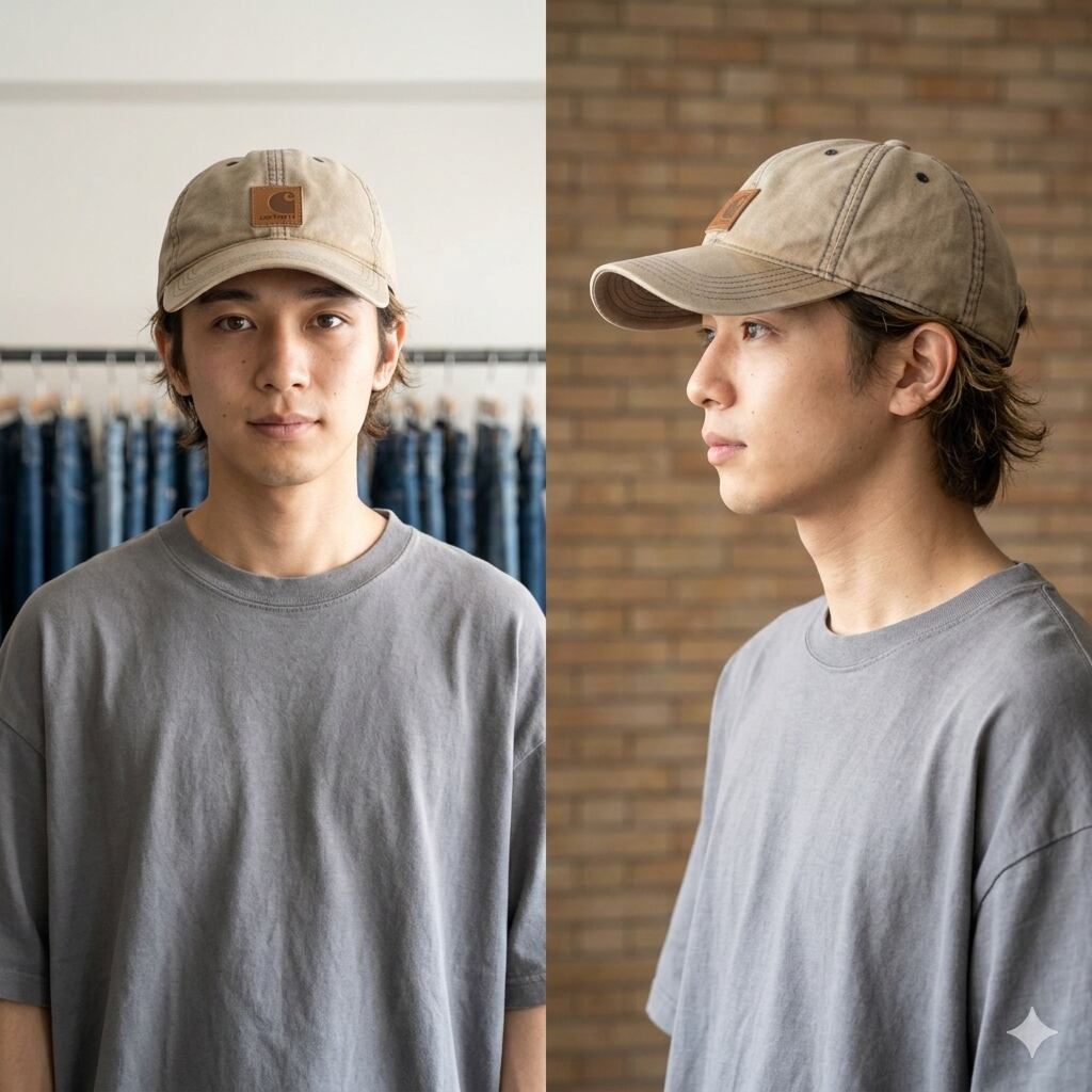 新品の帽子にありがちな「浮いてしまう」感覚がなく、手にしたその日からコーディネートに馴染んでくれます。ストリートスタイルにはもちろん、綺麗めな着こなしの外しとしても最適。