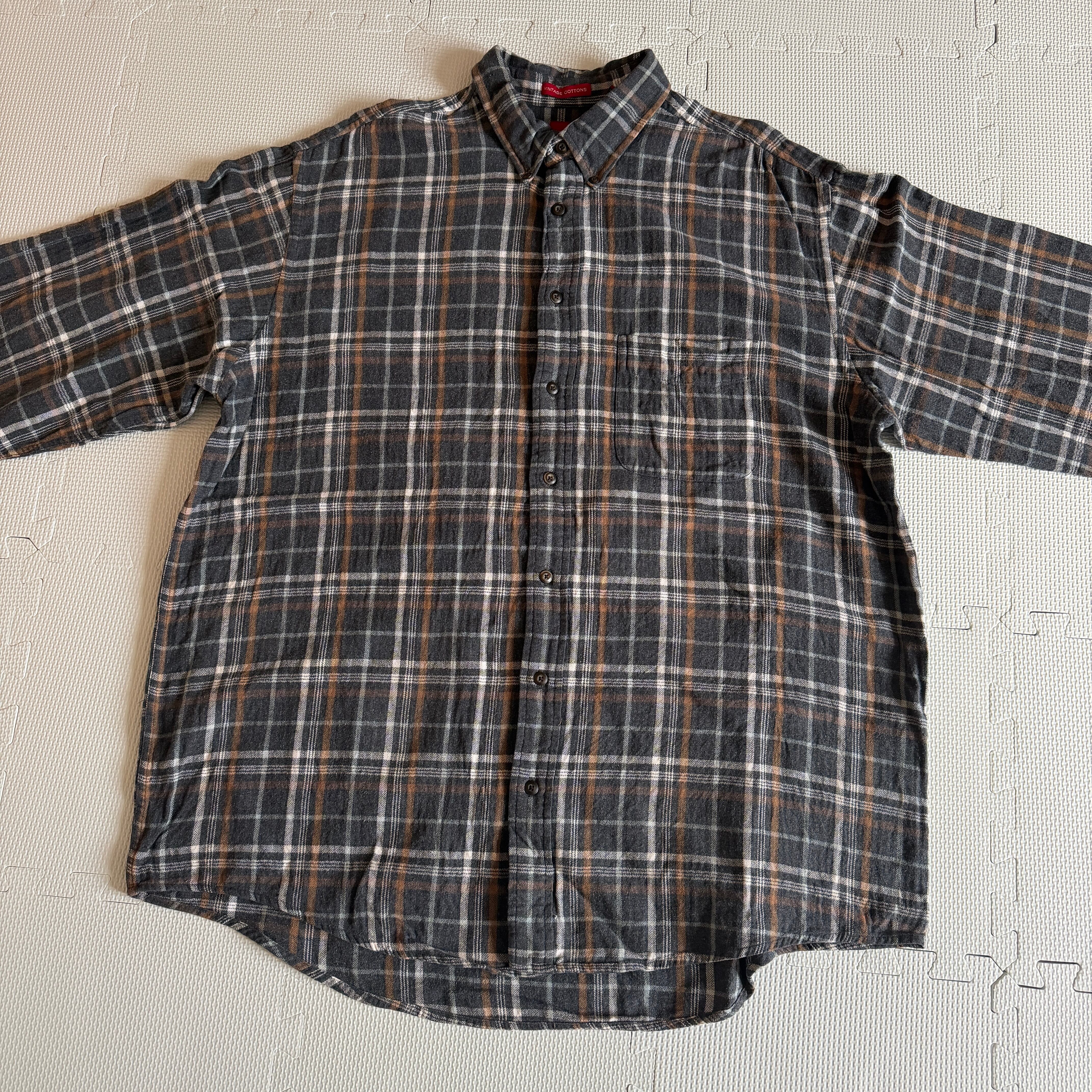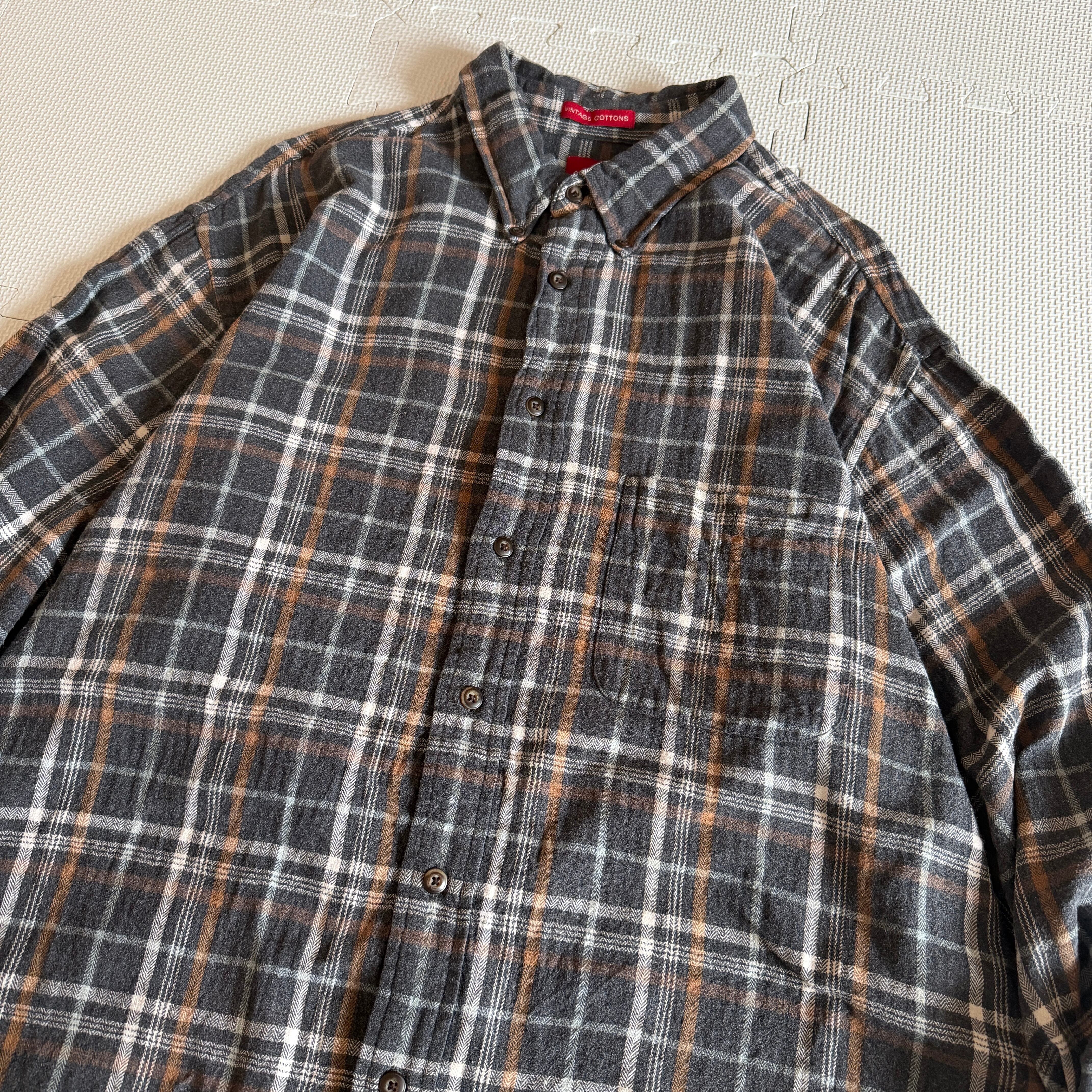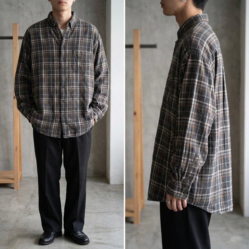 2000年代初頭、アメリカン・トラディショナルの再解釈が進む中で登場した「VINTAGE COTTONS」タグを冠した本品。創業から170年以上の歴史を持つARROWのアーカイブから着想を得た、厚手で堅牢なコットンフランネルを採用しています。当時、エミネムを筆頭とするヒップホップカルチャーや、スケートシーンにおける「オーバーサイズド・ワークウェア」の潮流を汲み取ったサイズ設計がなされています。