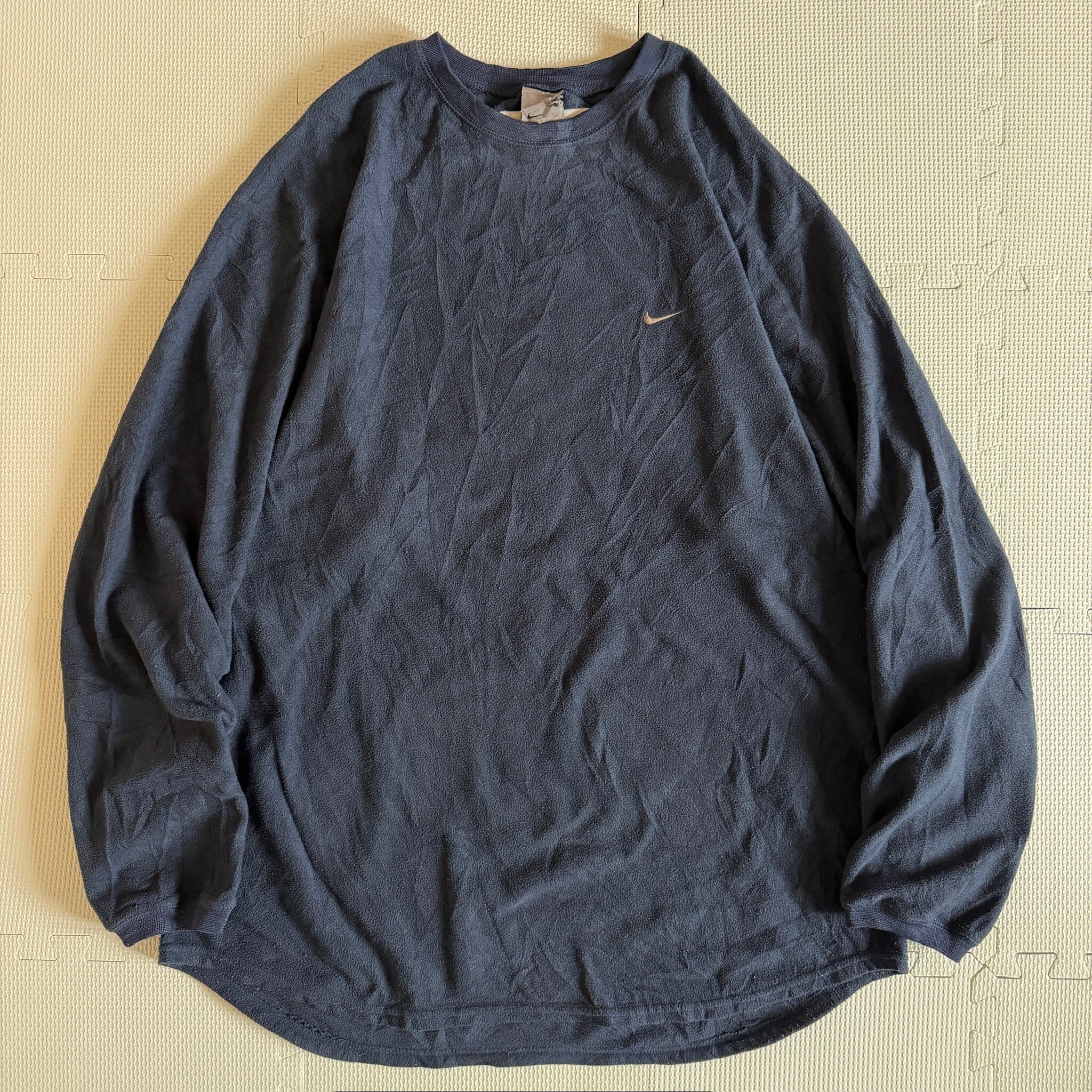 2000年代初頭のNIKEアーカイブから、高機能保温素材「THERMA-FIT」を採用したフリースプルオーバーのご紹介です。この時期のNIKEは、90年代のワイドシルエットを継承しつつ、よりミニマルで洗練されたデザインへと移行する過渡期にありました。本製品もその影響を色濃く受けており、装飾を削ぎ落としたソリッドなルックスが、当時の裏原宿カルチャーや、後のノームコア、テックウェアの源流を感じさせます。