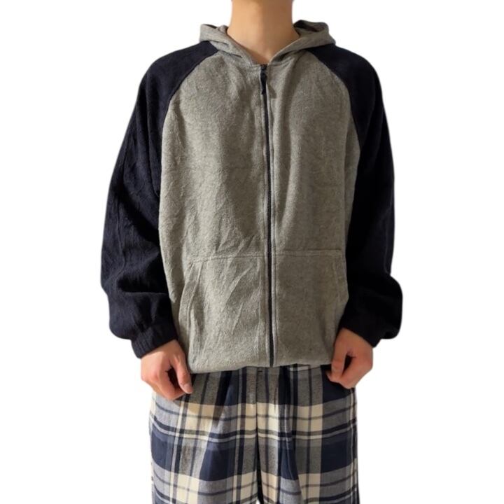 2トーンのフリースジップアップフーディー◎