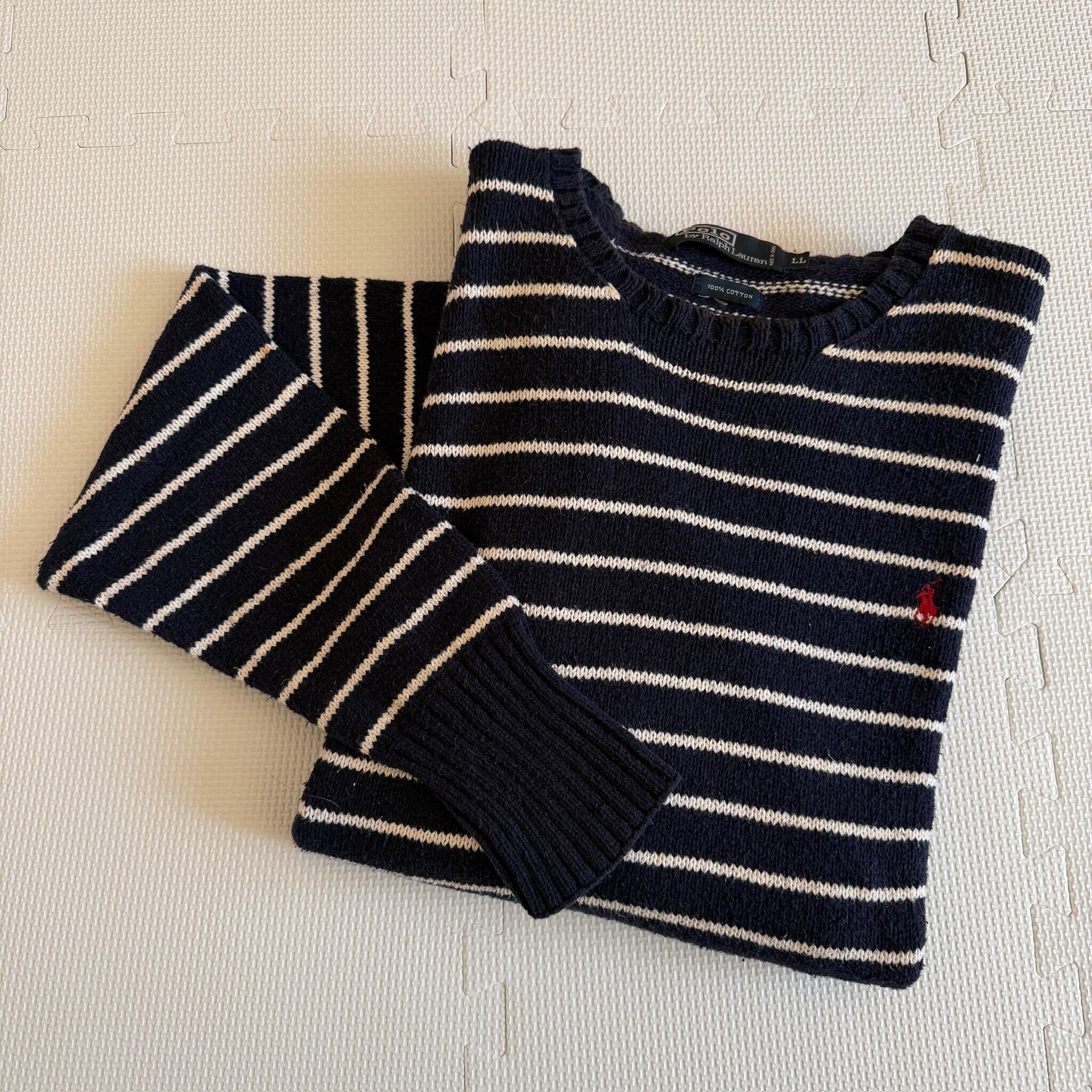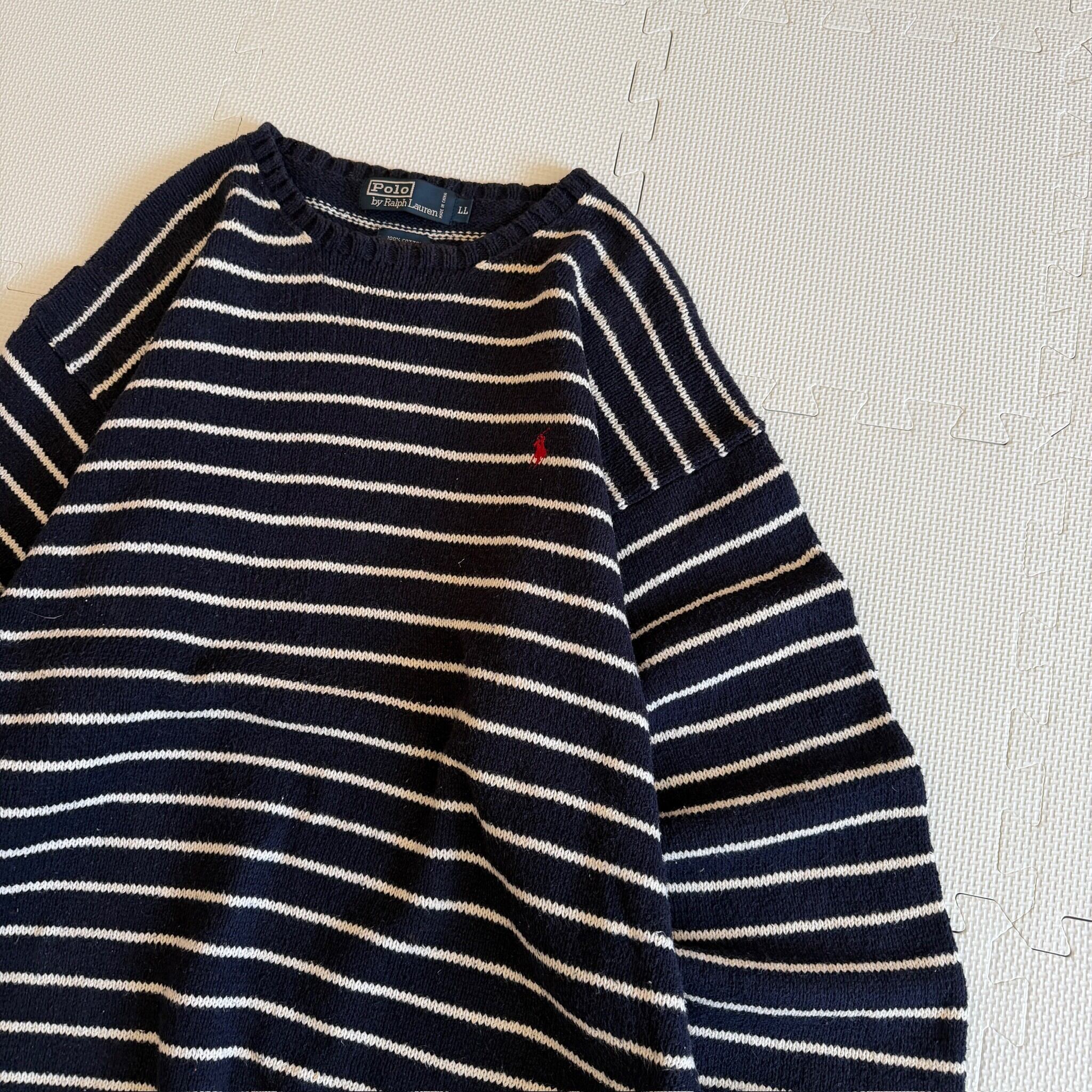 【Border!!!】 1990's "Polo by Ralph Lauren" cotton knit sweater / 90年代 "ポロラルフローレン" コットン ニット セーター 'ボーダー柄'