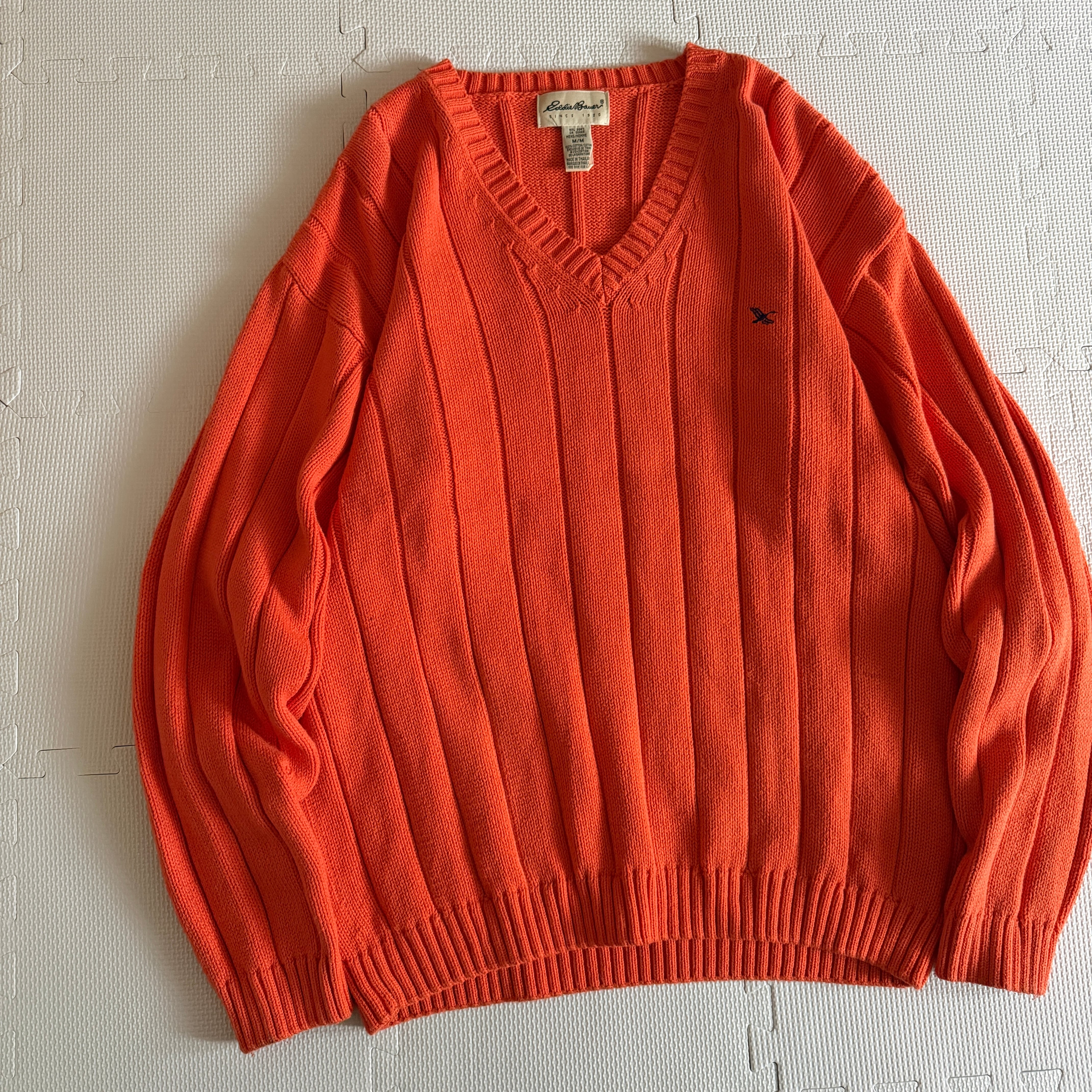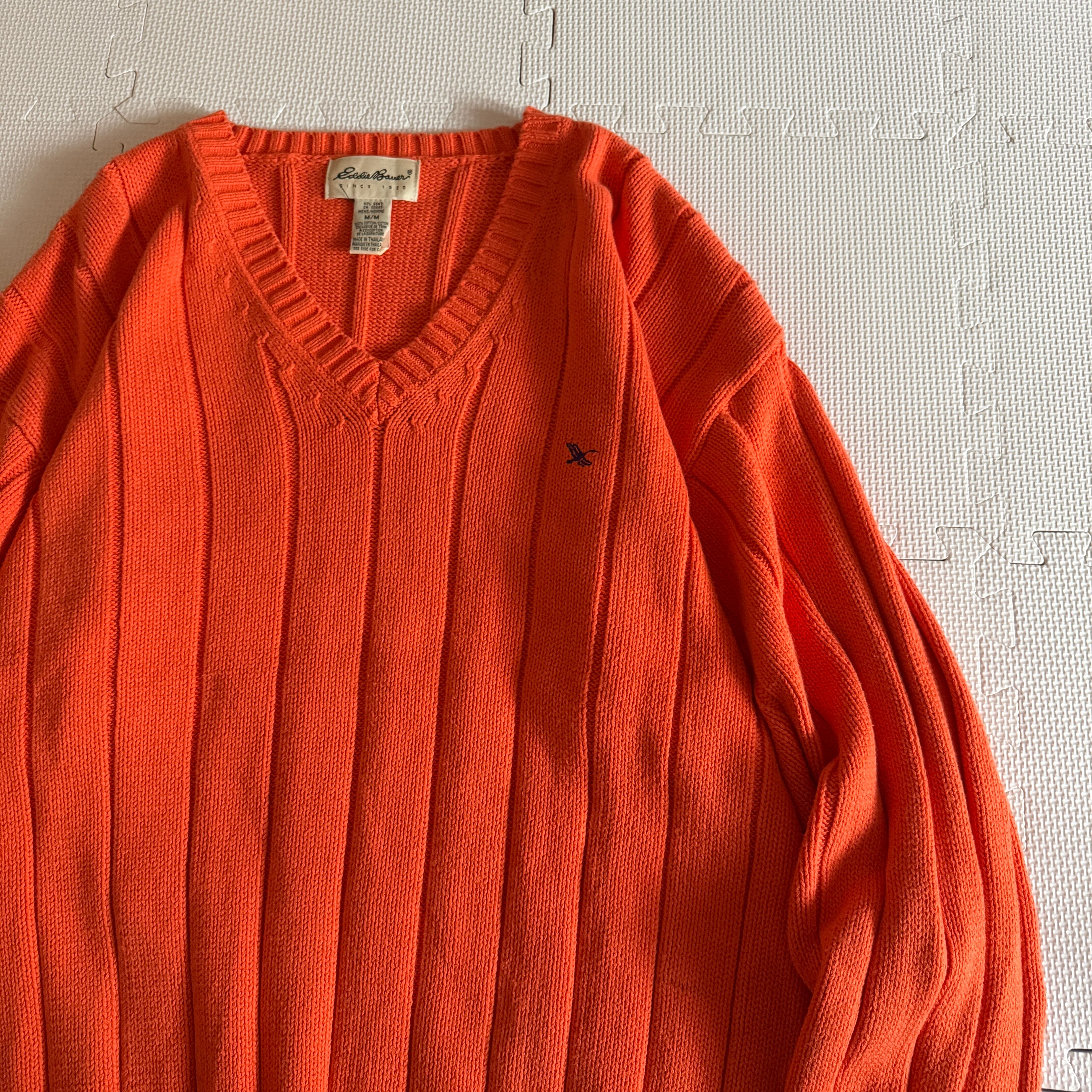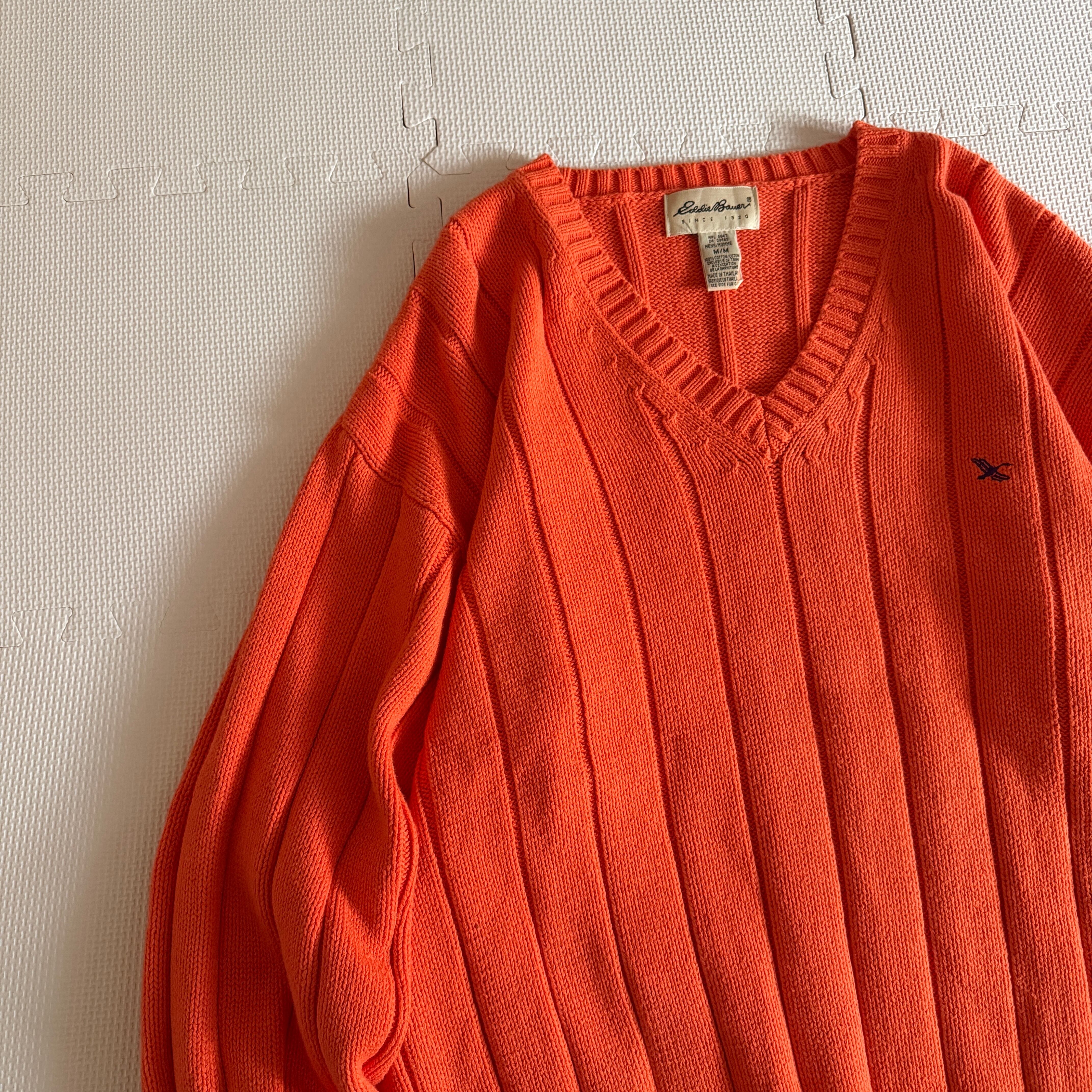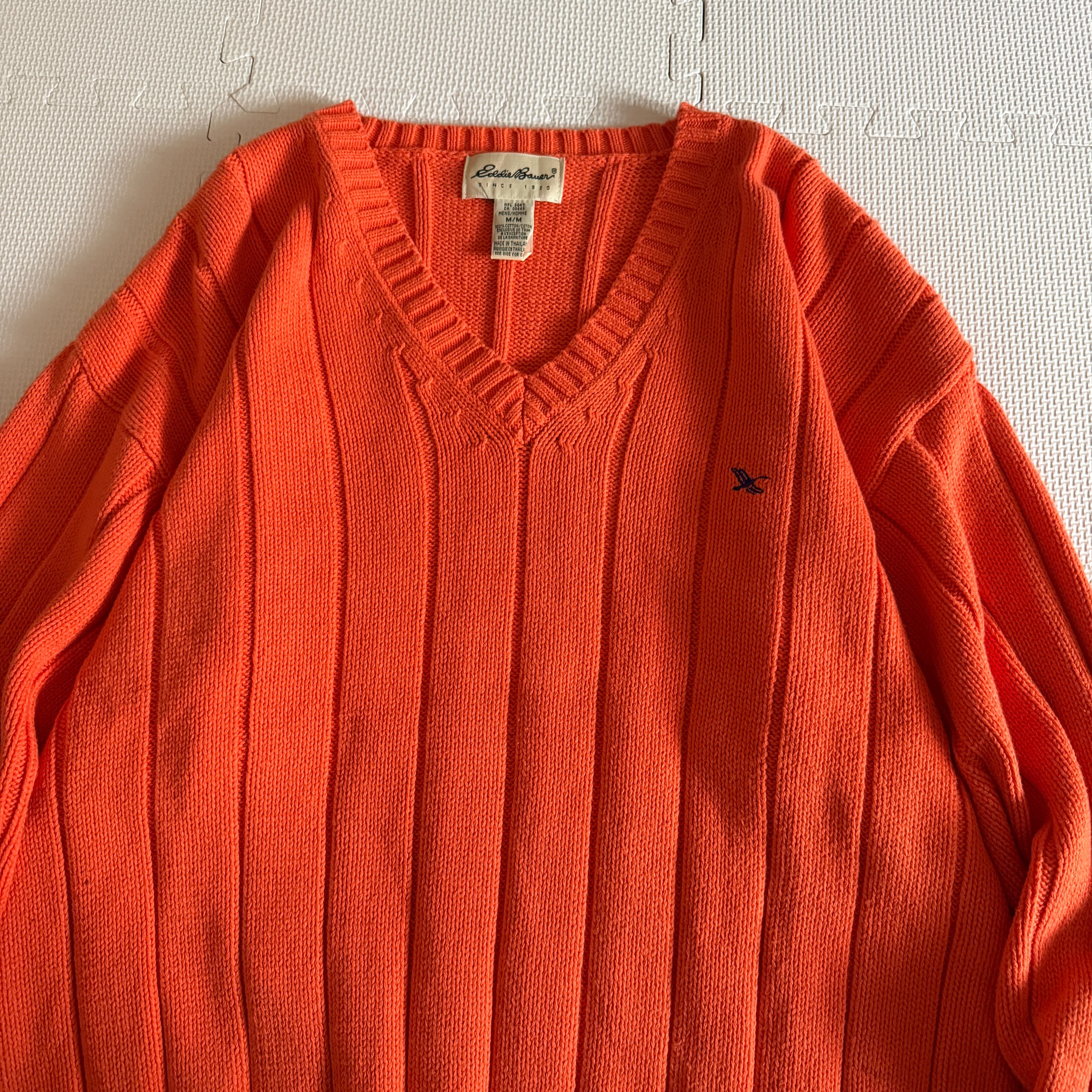 【Nice&Color】 1990's "Eddie Bauer" cotton knit sweater 'V-neck' / 90年代 "エディーバウアー" コットン ニット セーター 'Vネック'