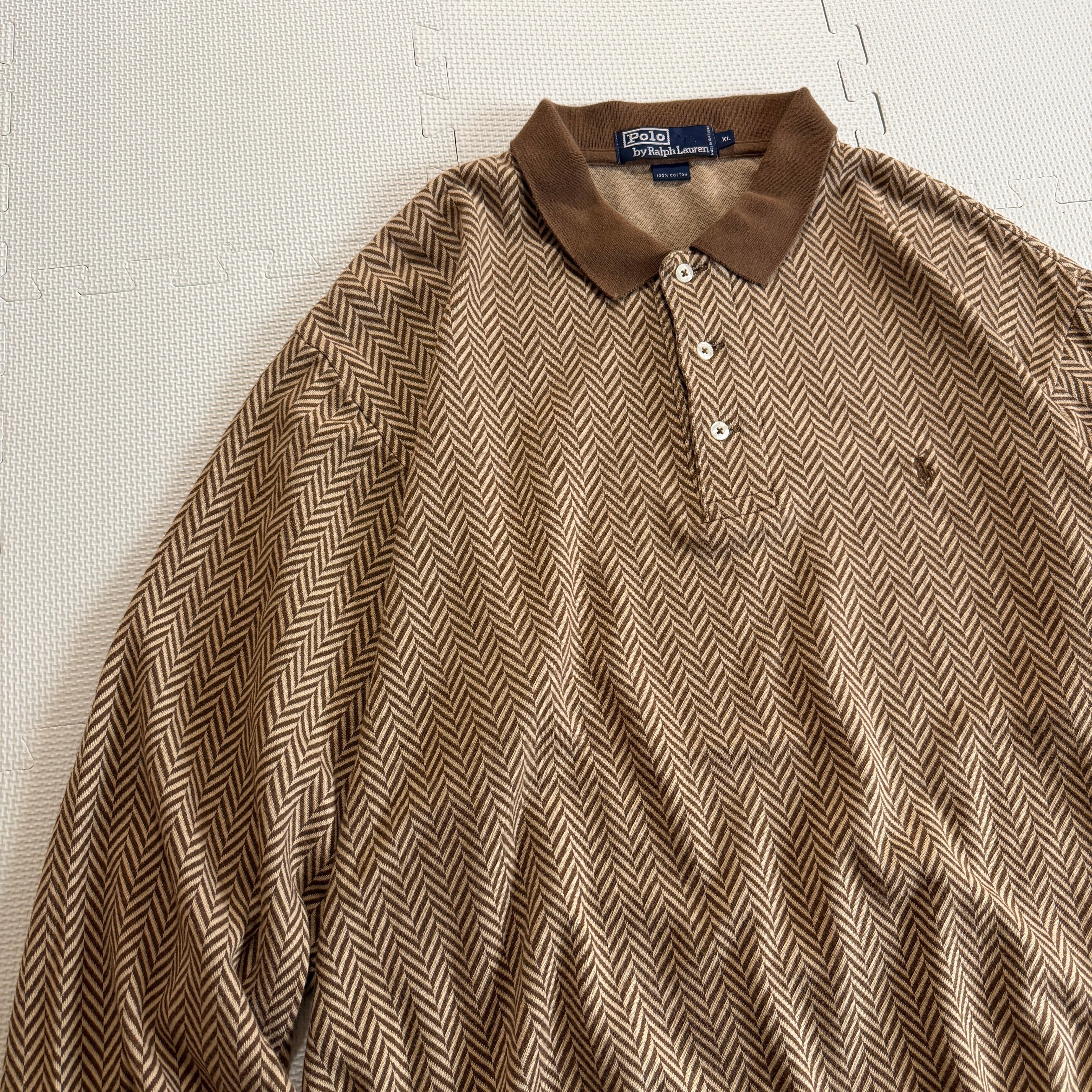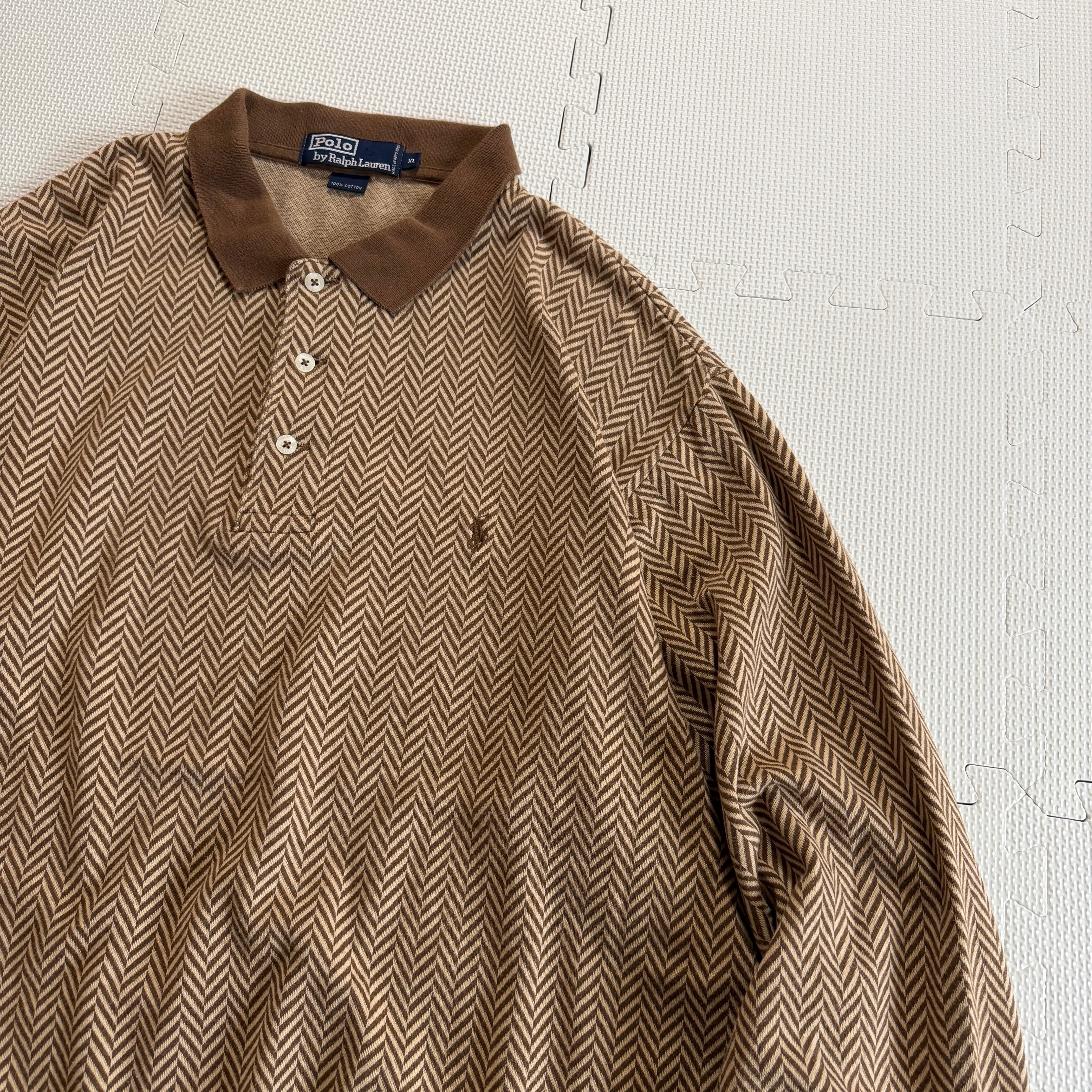 【"Polo by Ralph Lauren"】 1990's "Polo by Ralph Lauren" L/S polo shirt 'herringbone' / 90年代 "ポロラルフローレン" 長袖 ポロシャツ 'ヘリンボーン'