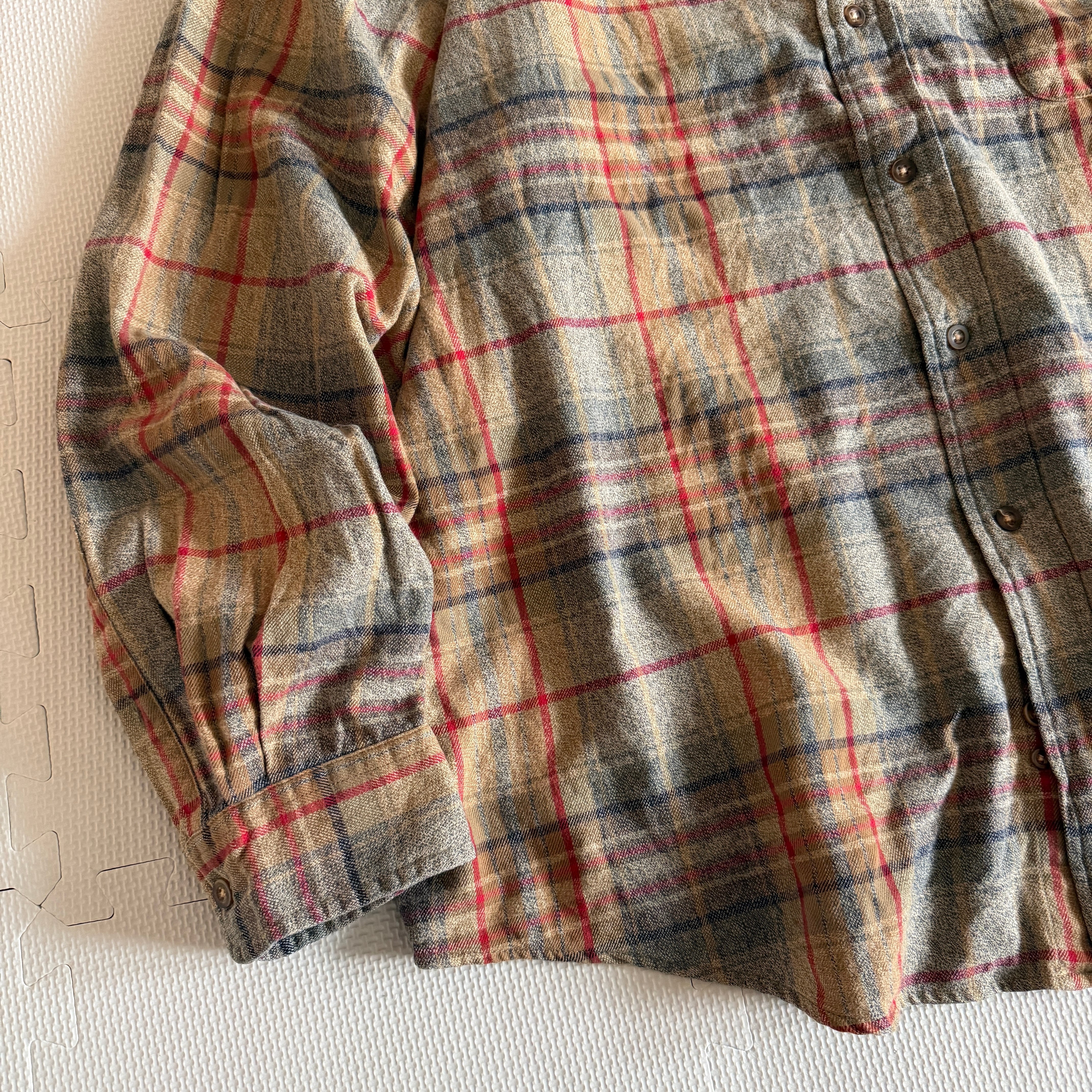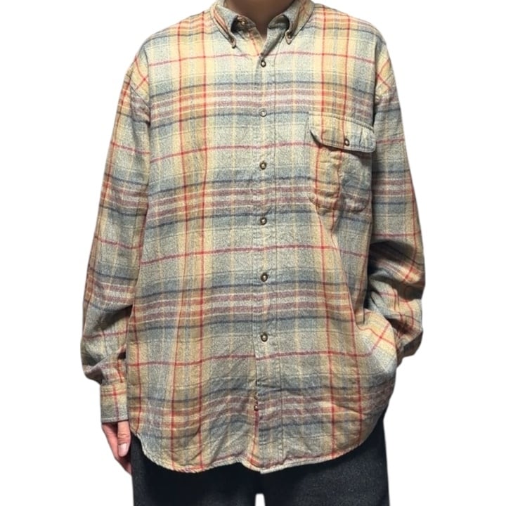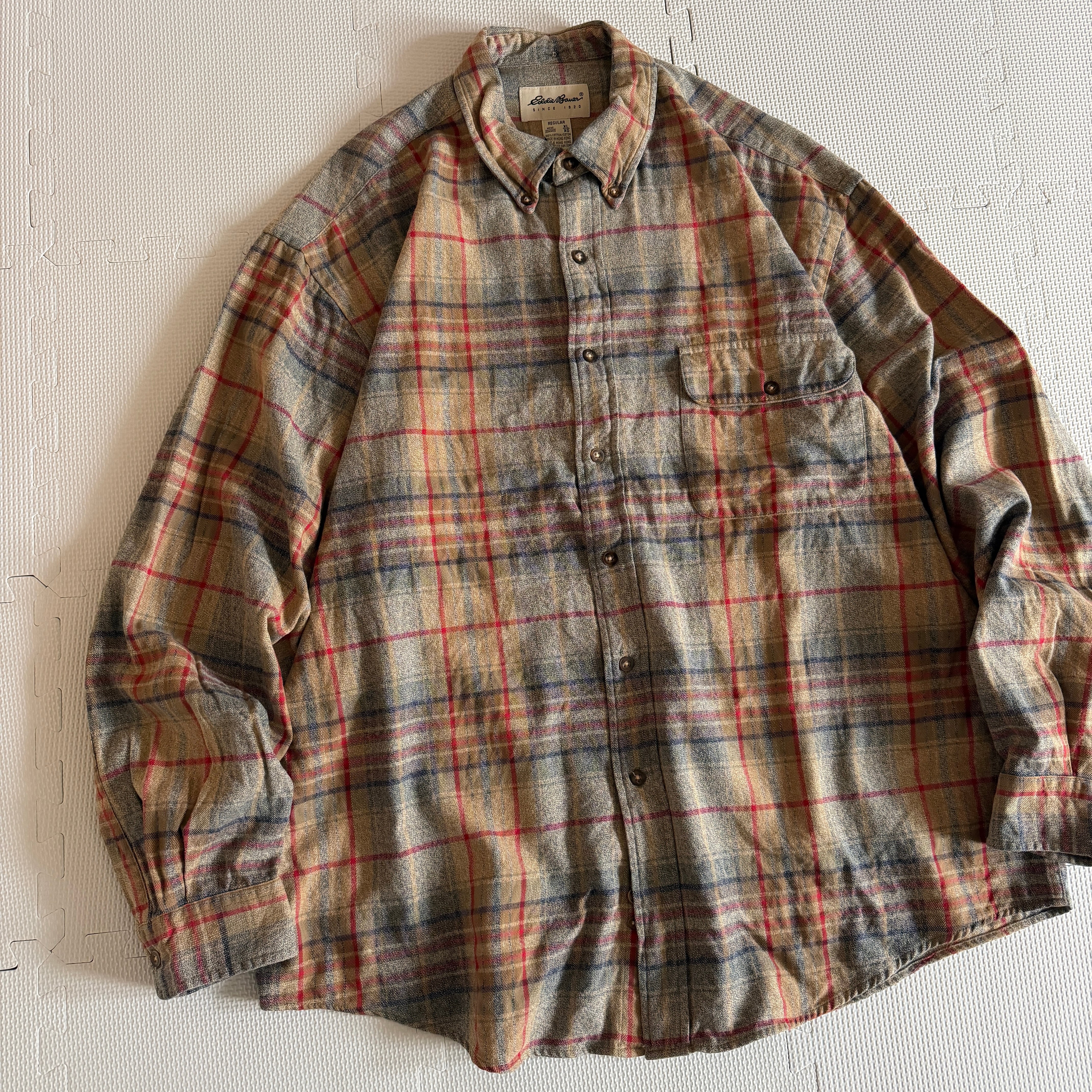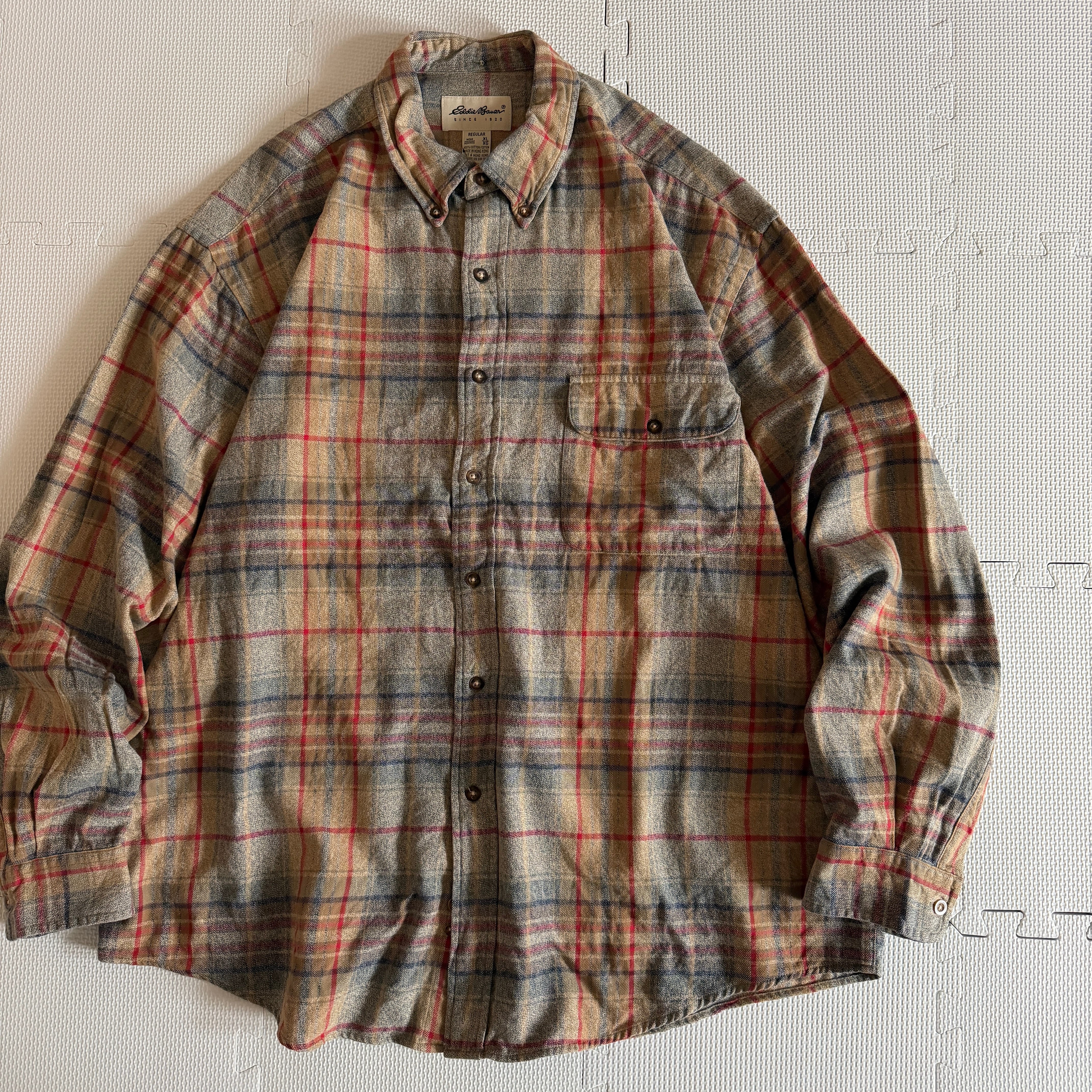 【"Eddie Bauer"】 1990's "Eddie Bauer" L/S shirt Ombre shadow check 'flap pocket' / 90年代 "エディーバウアー" 長袖 シャツ オンブレ シャドー チェック 'フラップポケット'
