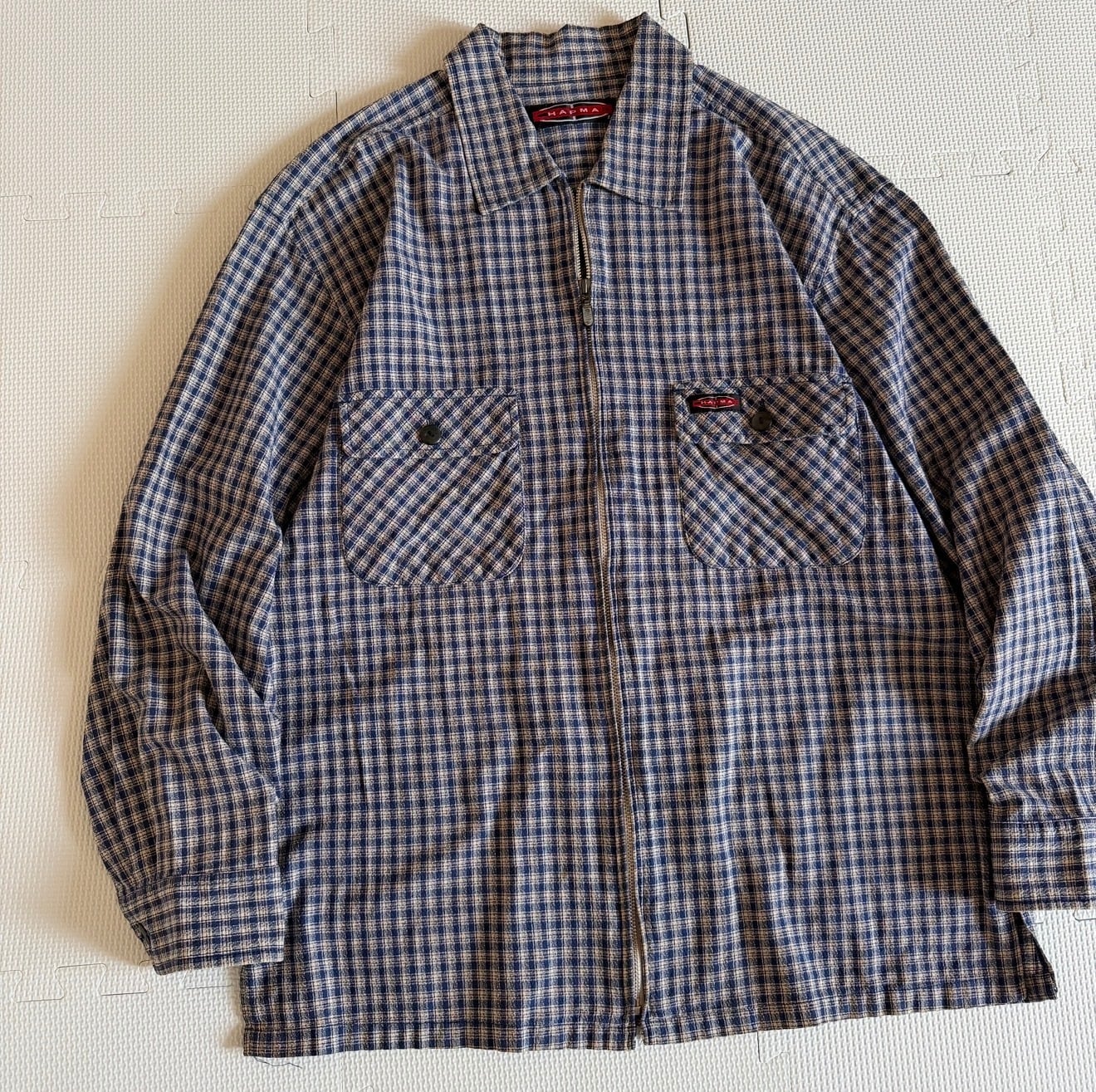 【HAPMAN】 1990's "HAPMAN" shadow check shirt Zip-Up jacket / 90年代 "ハップマン" シャドー チェック シャツ ジップアップ ジャケット