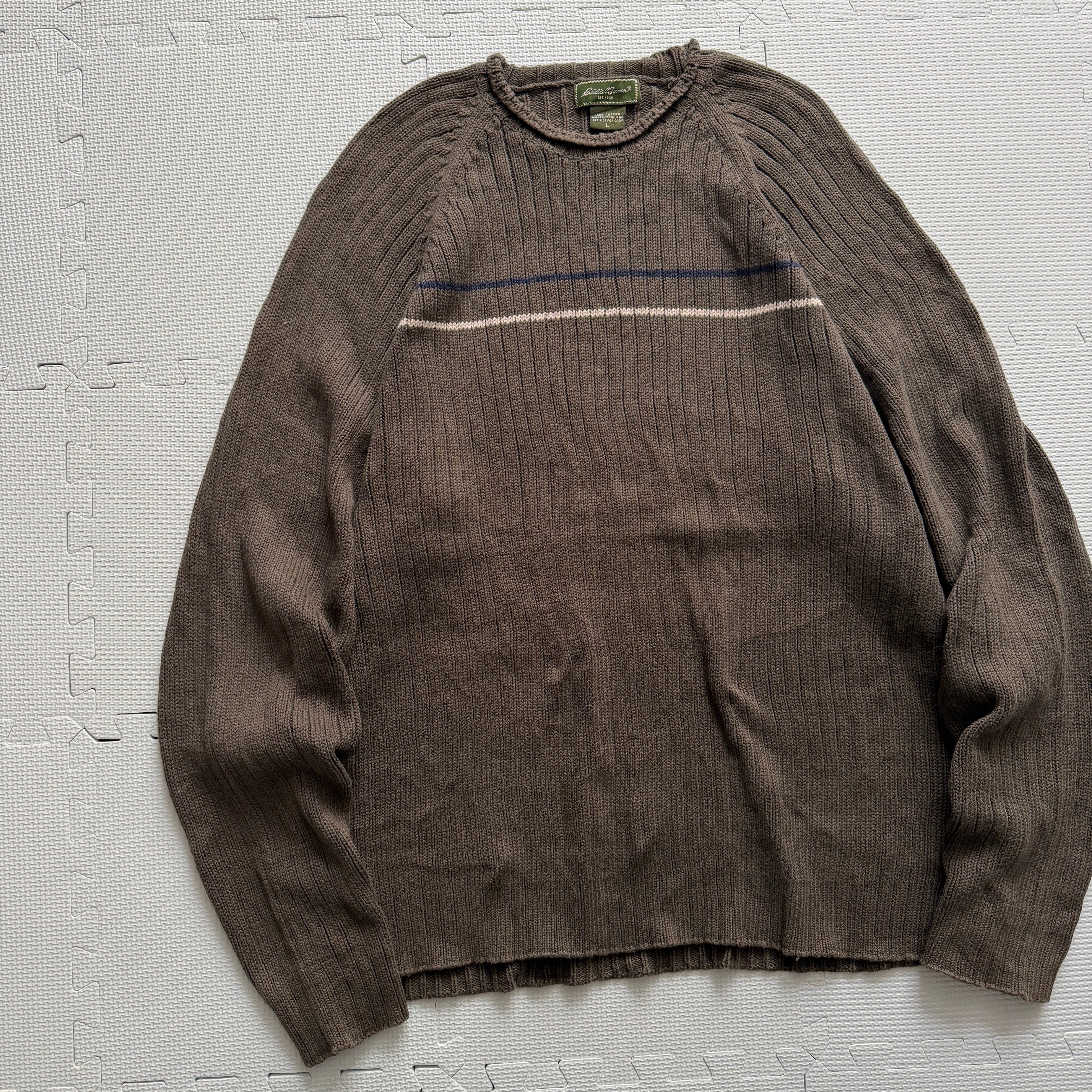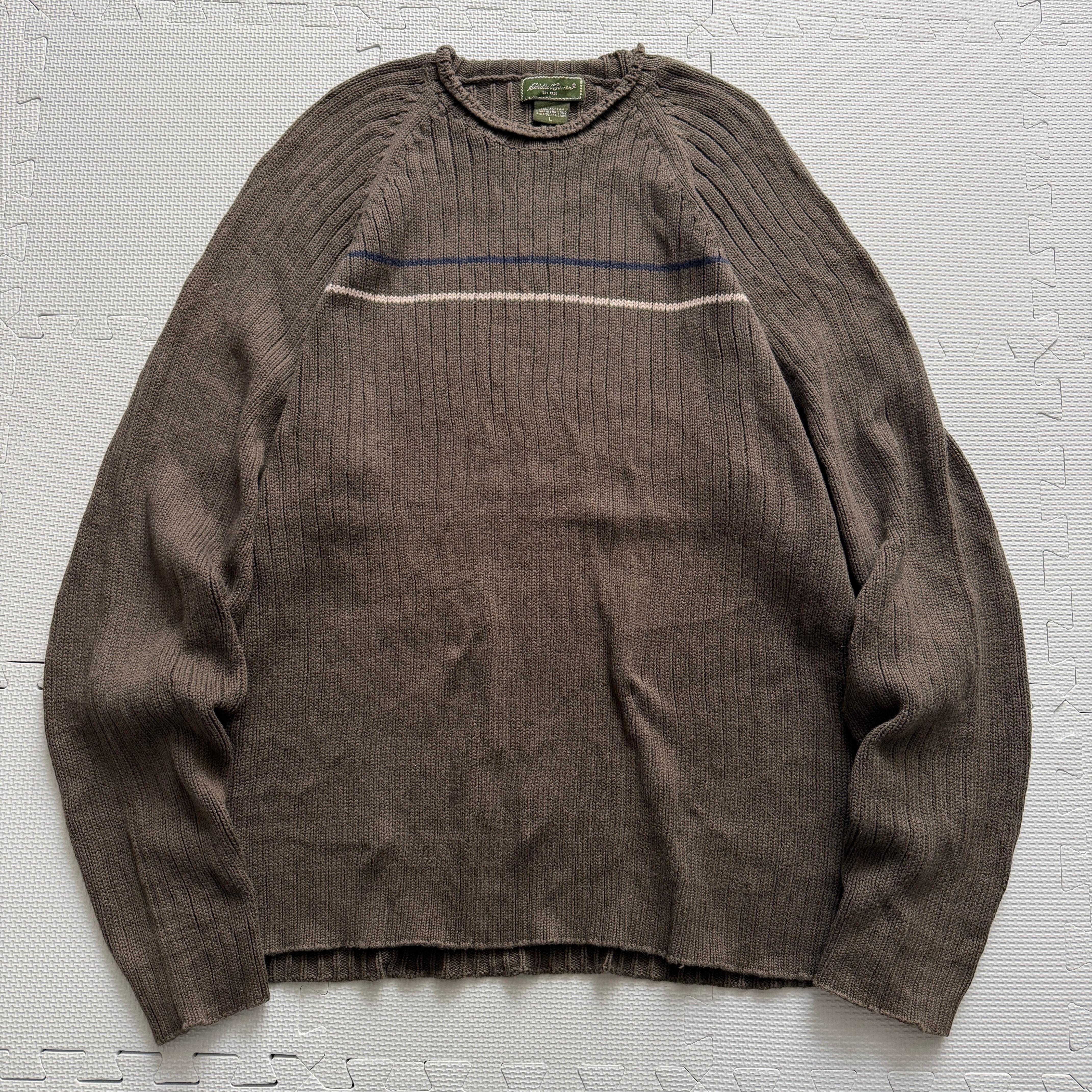 【"Eddie Bauer"】 1990's~ "Eddie Bauer" cotton knit sweater 「roll-neck」 / 90年代〜 "エディーバウアー" コットン ニット セーター 「ロールネック」