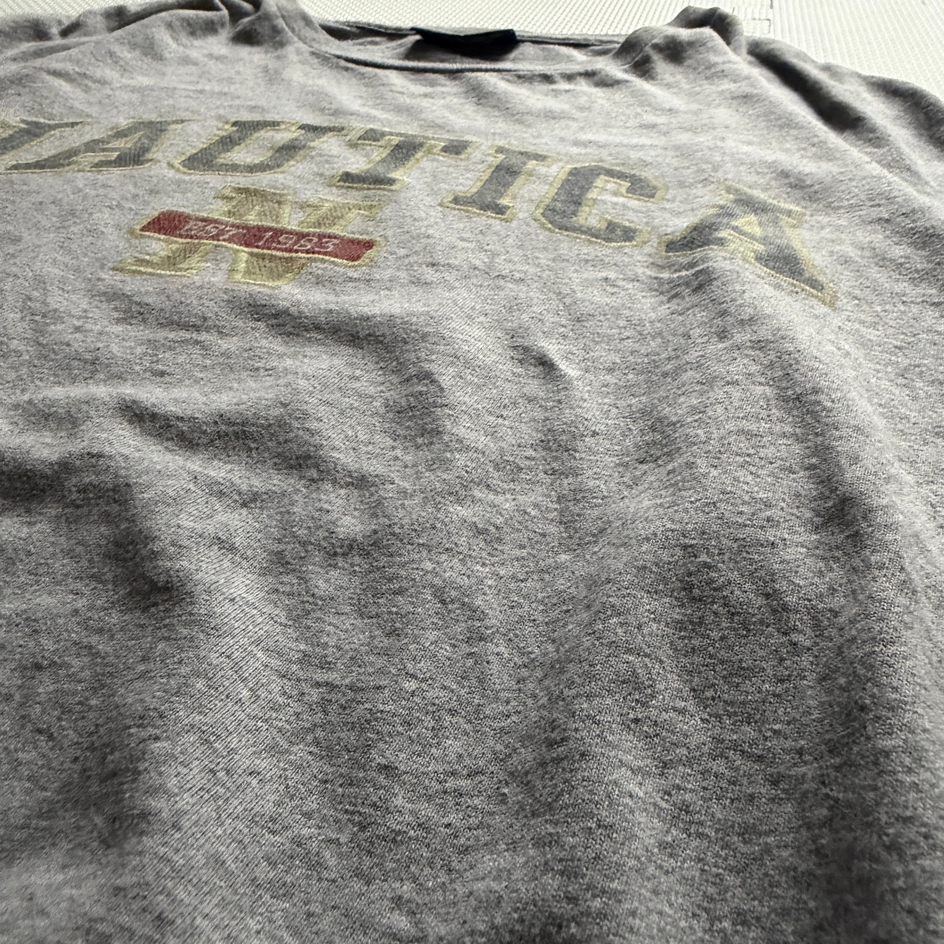 「NAUTICA」のロゴ部分が一見すると刺繍ロゴに見えますが、よーく近くで見るとそういう仕様になってるプリントでした。面白い!