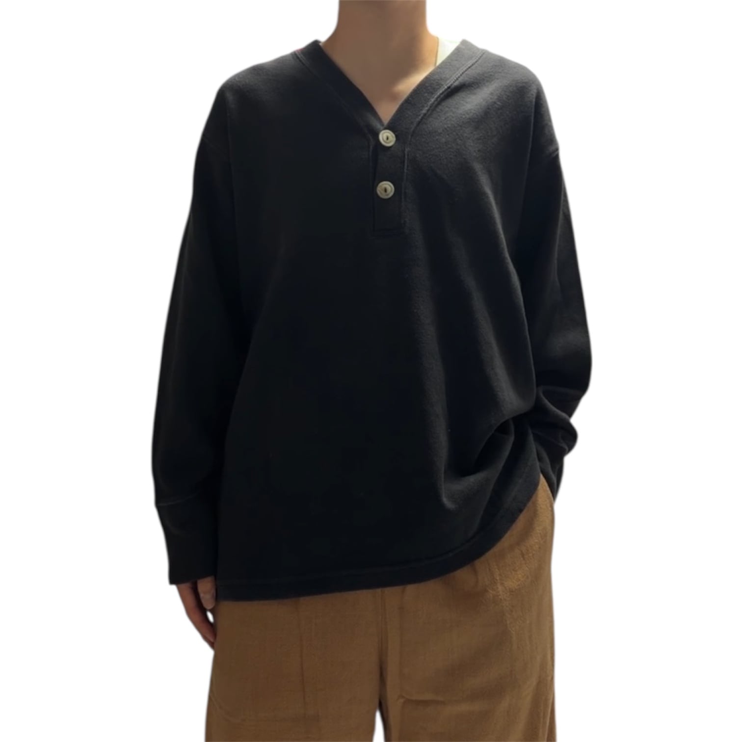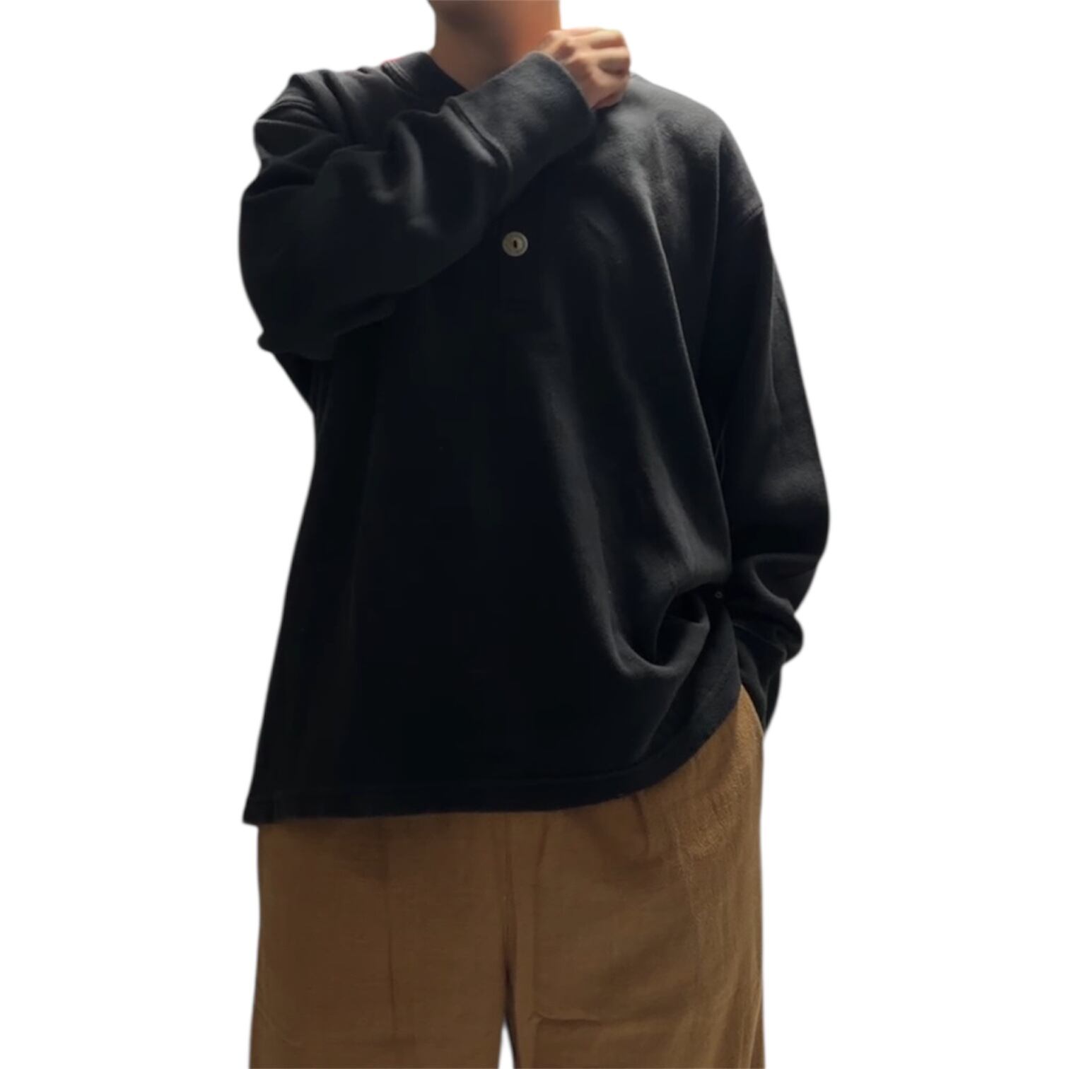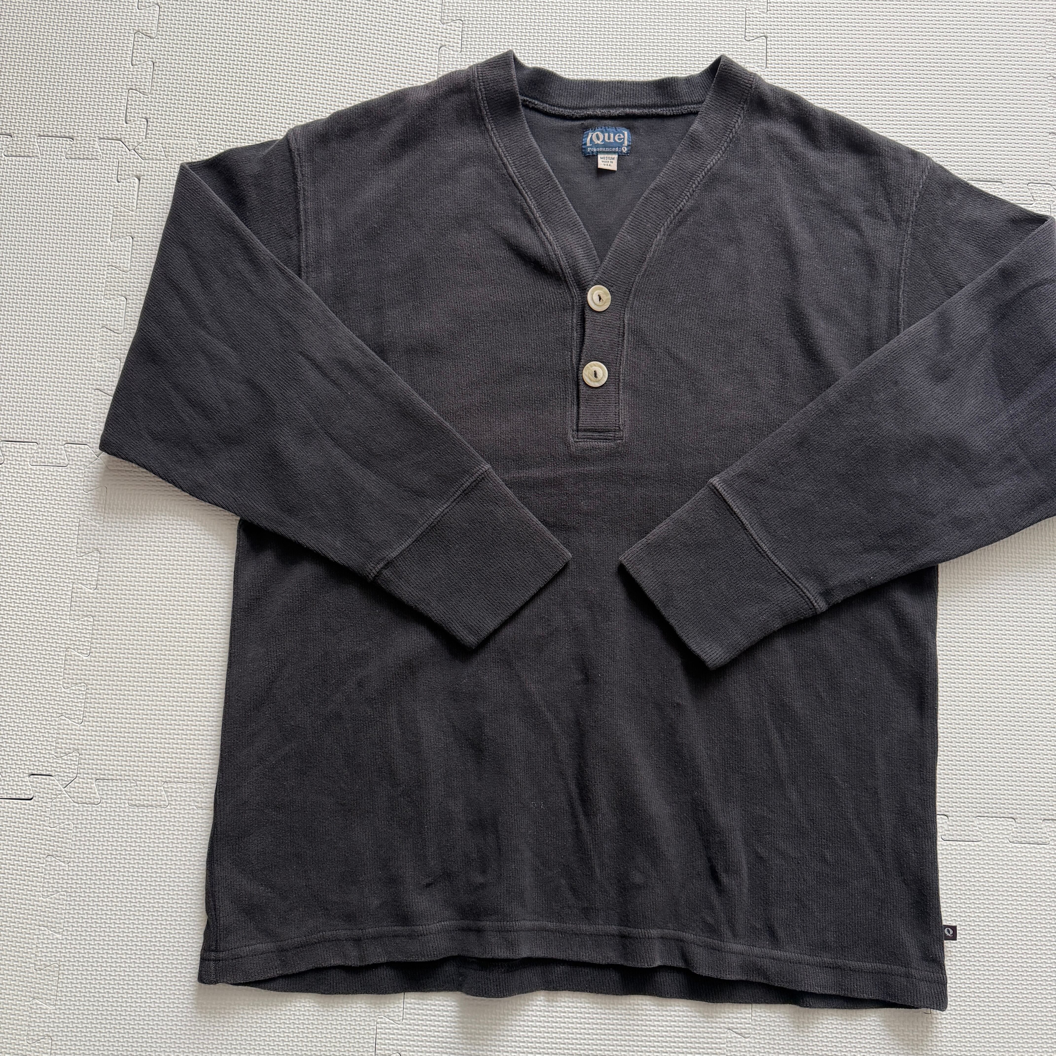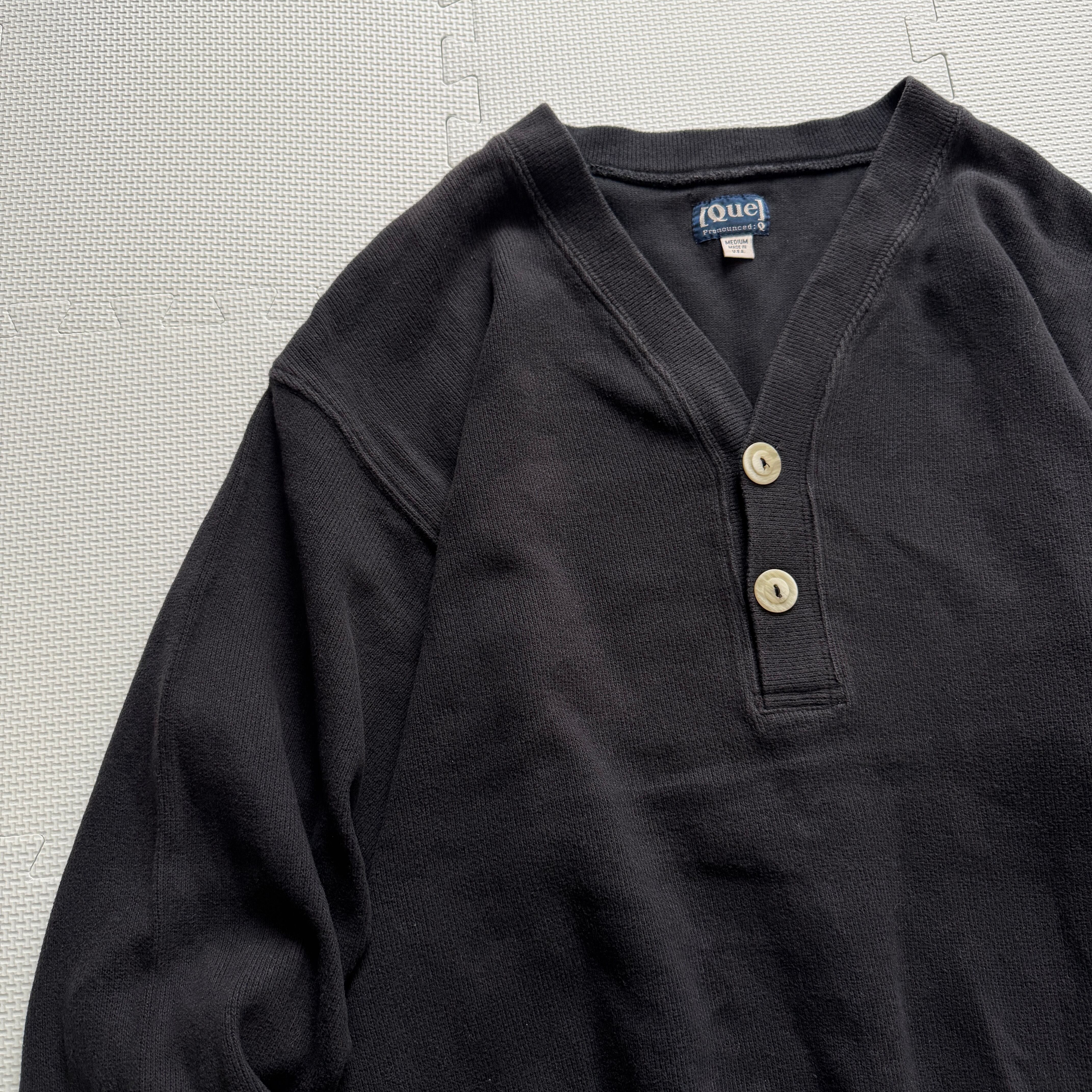 【"Que"】 Made in USA 1990's "Que" cotton knit sweater 'Half&Button' / アメリカ製 90年代 "ク" コットン ニット セーター 'ハーフボタン'
