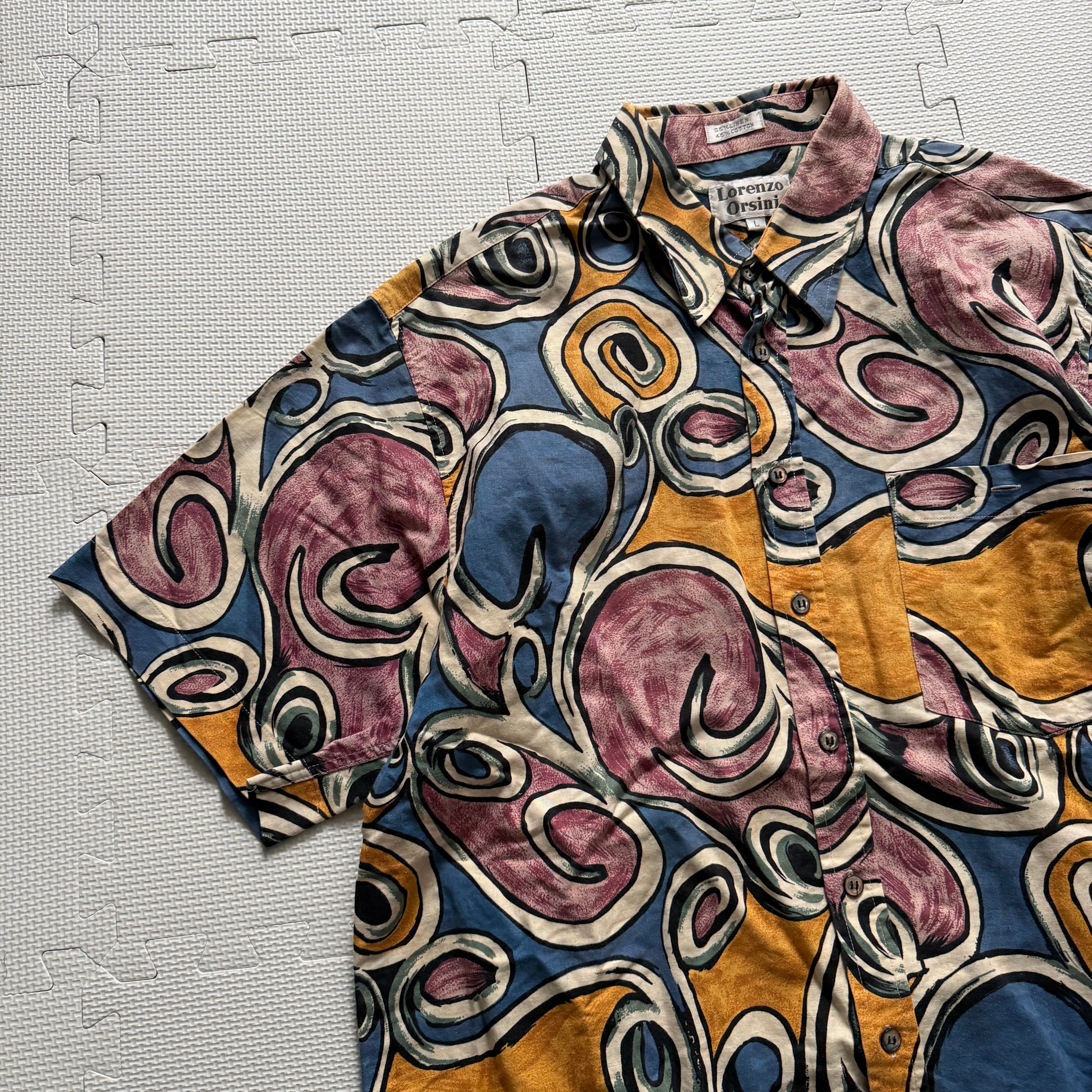 【"Lorenzo Orsini"】 1980's~ "Lorenzo Orsini" S/S shirt 'Marble' 「cotton×linen」 / 80年代〜 "ロレンツォ・オルシーニ" 半袖 シャツ 'マーブル' 「コットン×リネン」