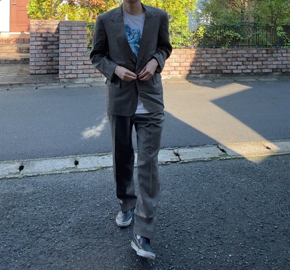 90s BrooksBrothers setup tailoredjacket slackspants gray