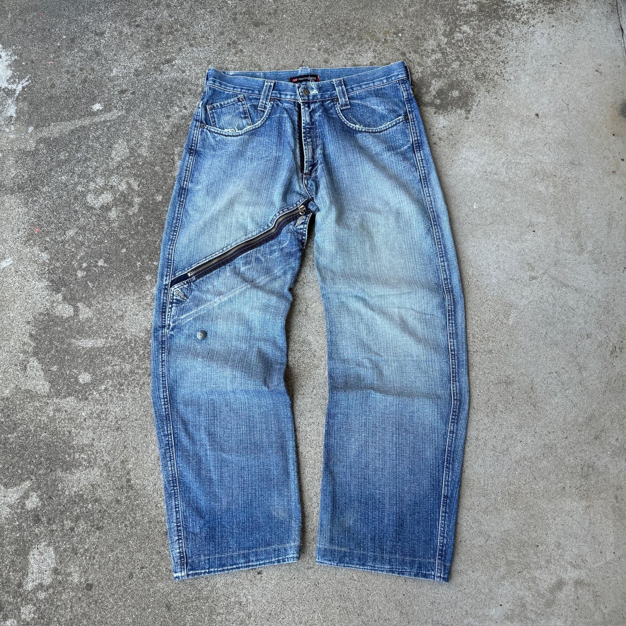ブランドはよくわかりませんが、膝上にジップデザインがあったり、開けてみると中には "I'm here"の文字があったり、何気に色落ちとかもよかったり、イタリア製だったり。