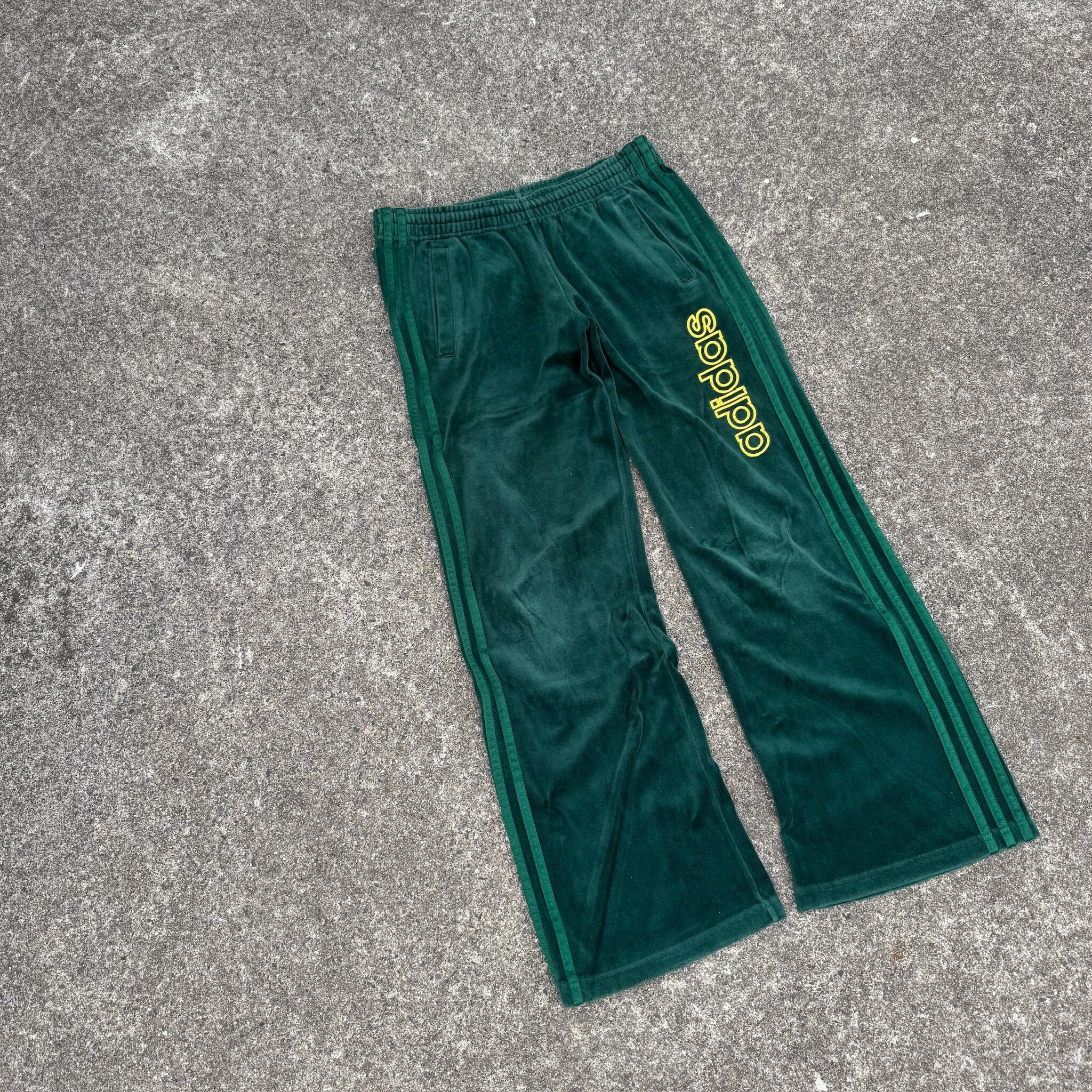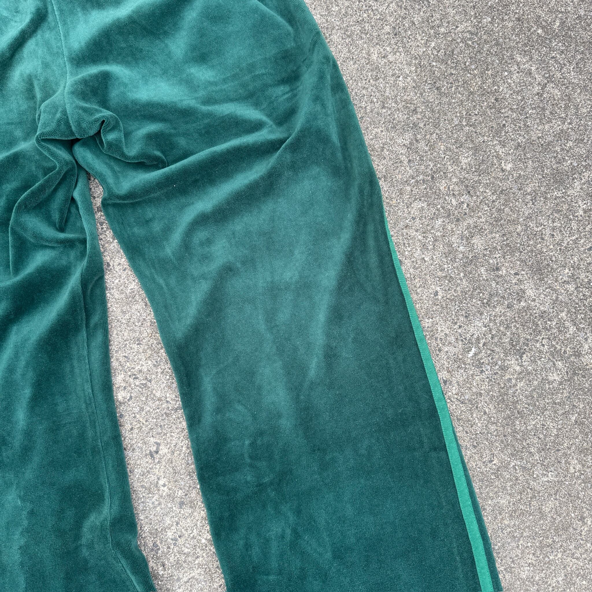 まずアディダスのベロアの時点でまず間違い無くて、それに加えてグリーンボディからの同色の3ライン、さらにはフレアシルエット加工まで施されています。