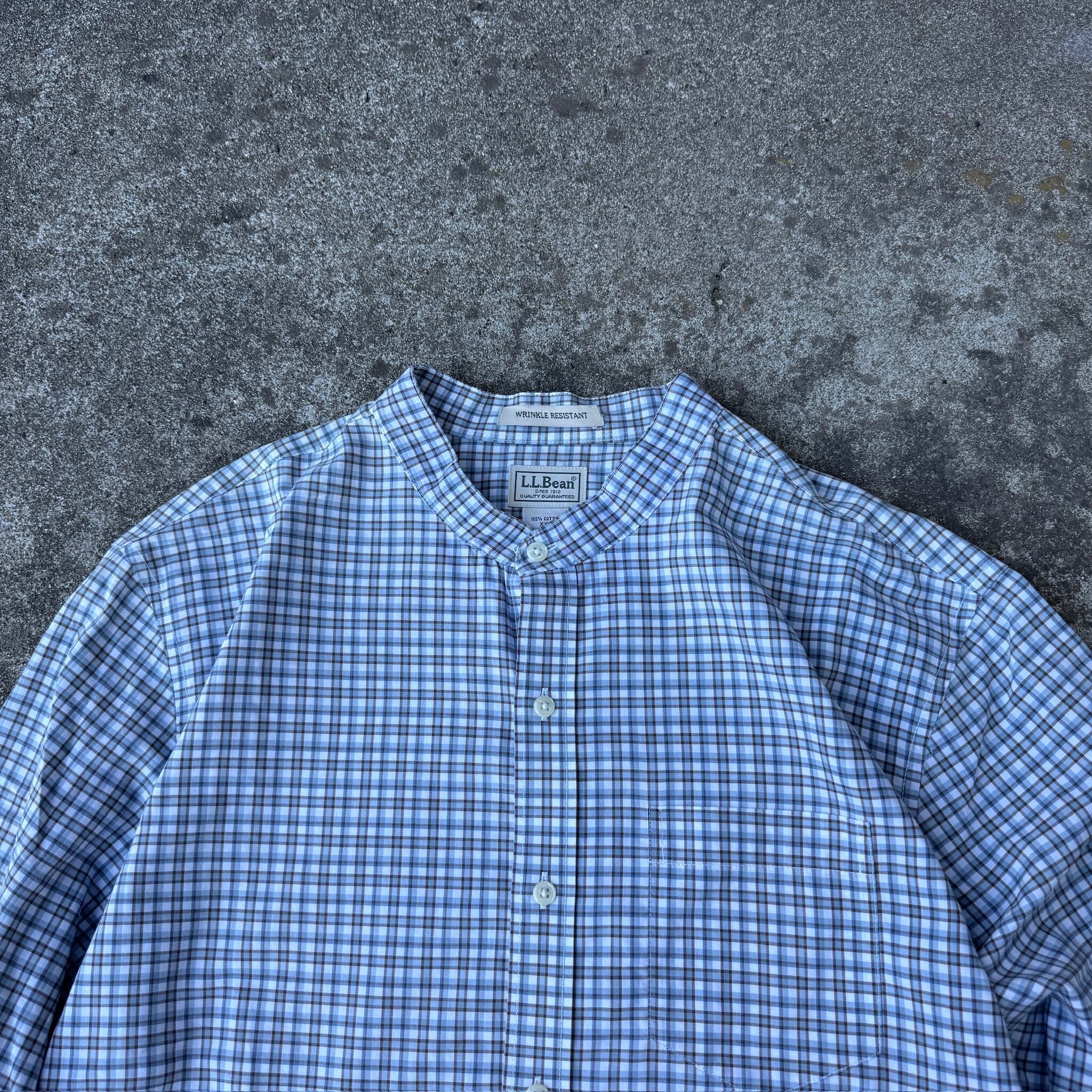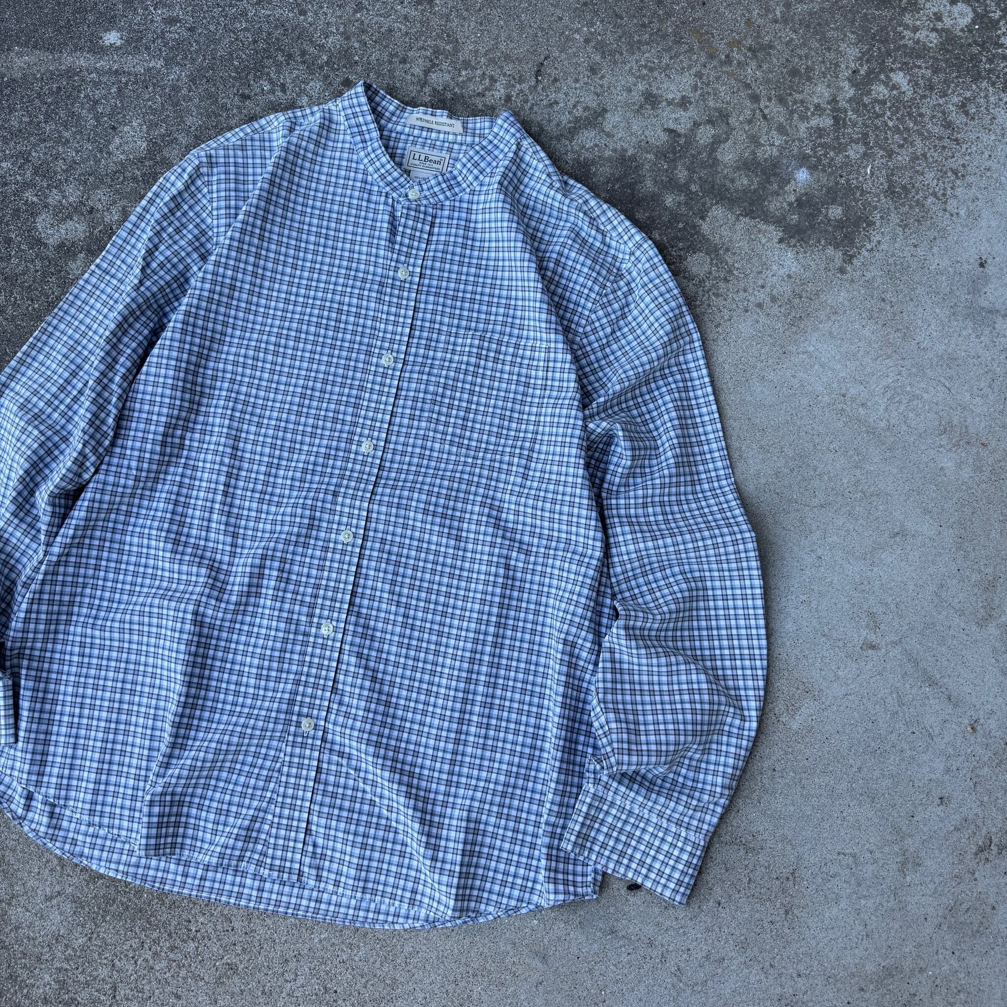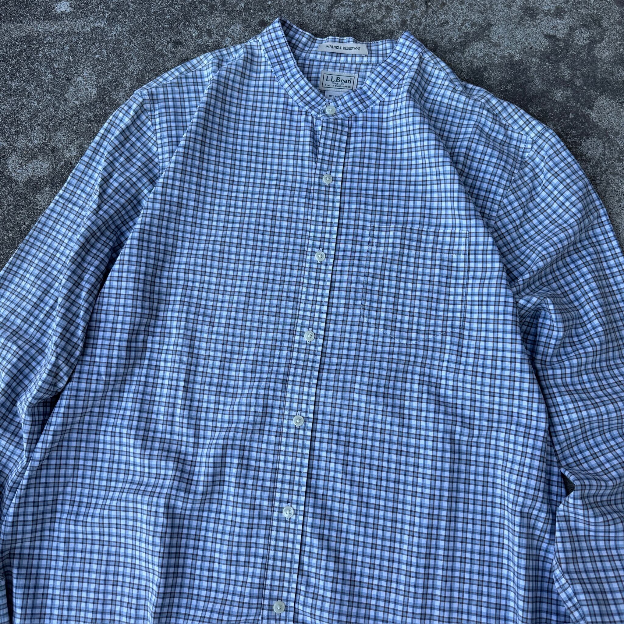 L.L.Bean llbean L/S band coller check shirt エルエルビーン バンドカラーシャツ 長袖シャツ チェックシャツ