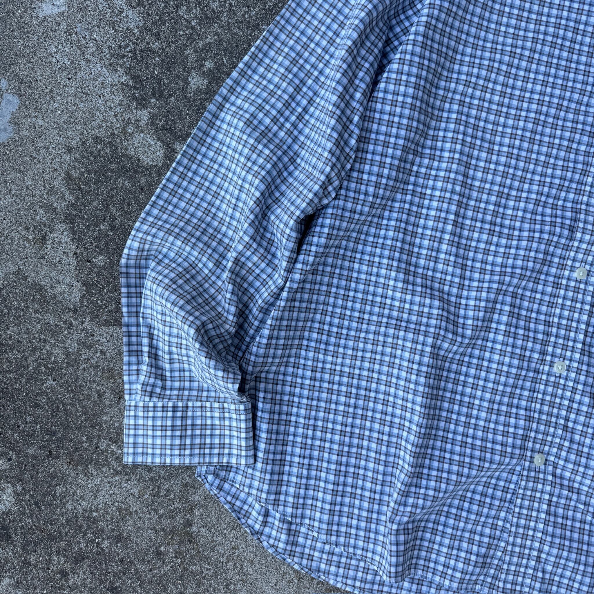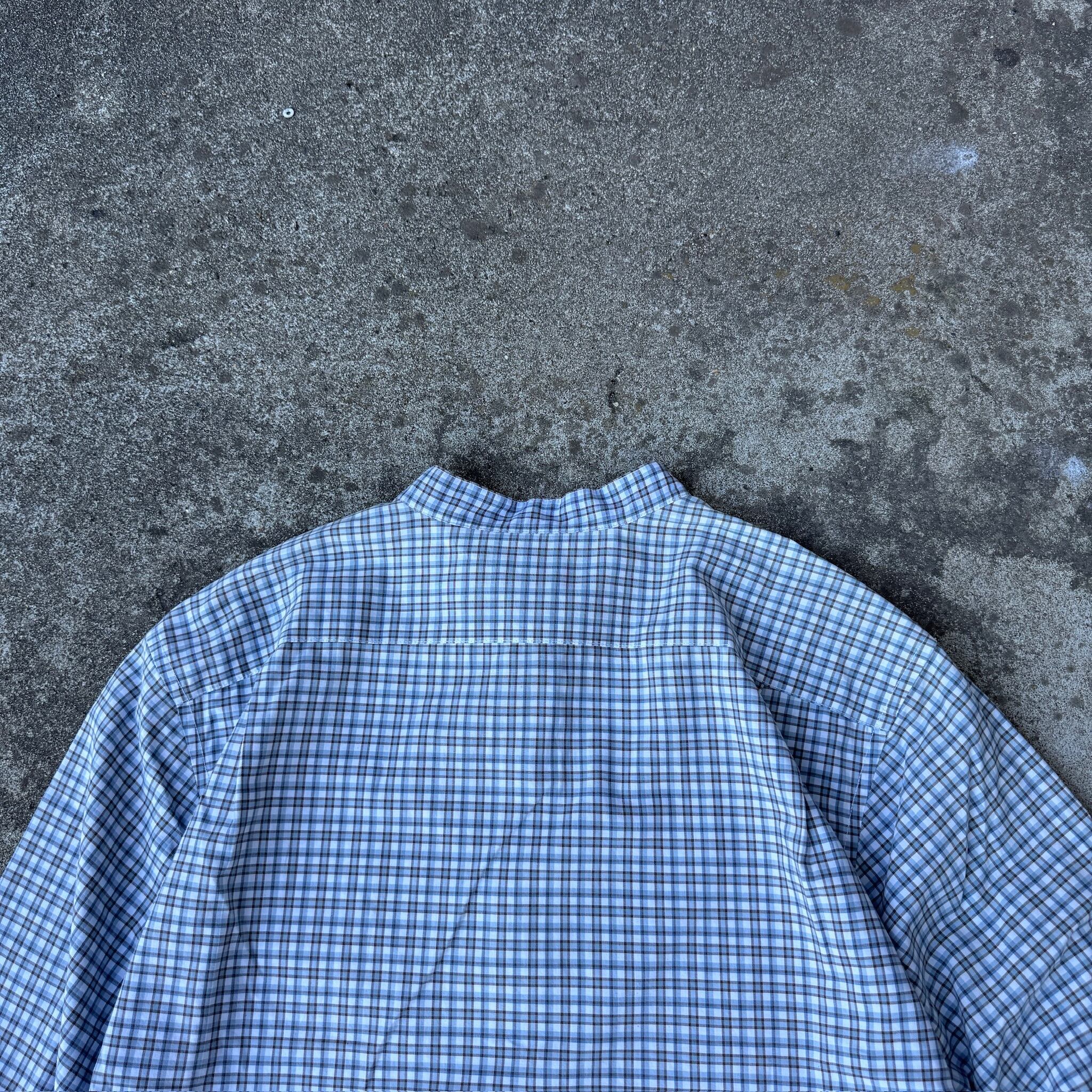今回は普通のとはちょっと違った"バンドカラー"パターンのチェックシャツです。