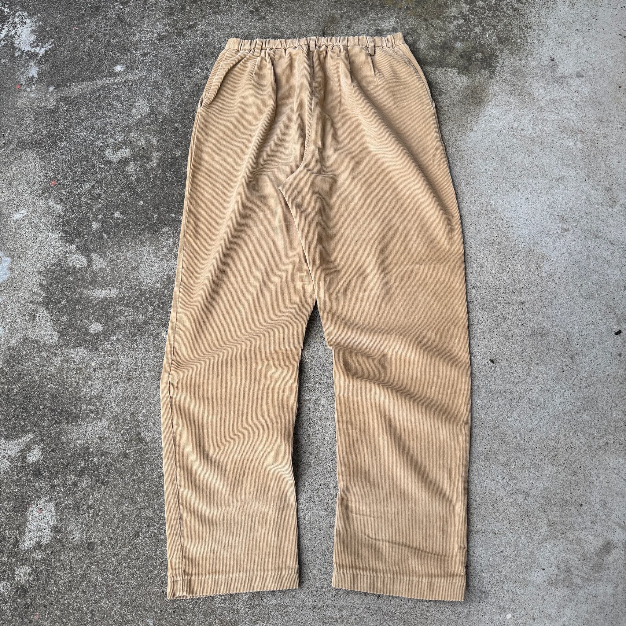 ライトベージュカラーで細畝、ゆるくテーパードかかってて足元をスッキリとした印象にしてくれます。