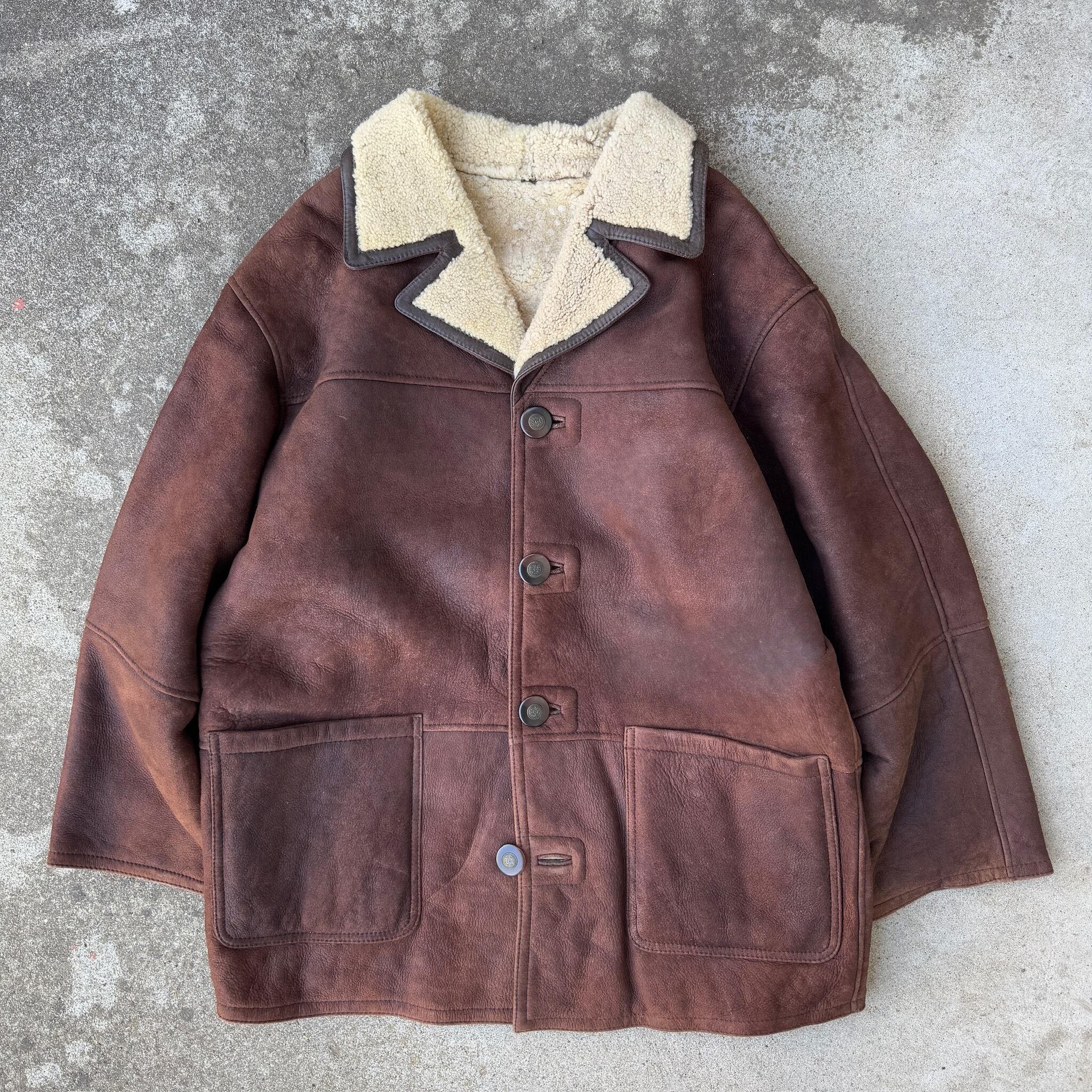 90s mouton jacket sheep skin leather L / 90年代 ムートンコート レザージャケット "シープスキン"
