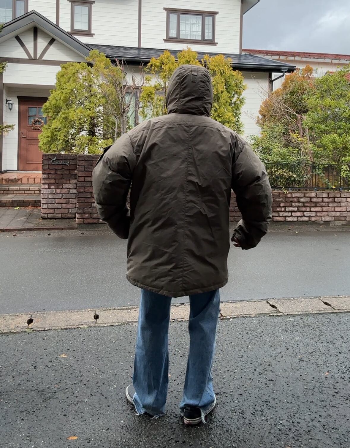 デカすぎるダウンジャケット。最初に言っておきますが、このアウターは自分が今まで袖を通したものの中で圧倒的に1番暖かいです笑