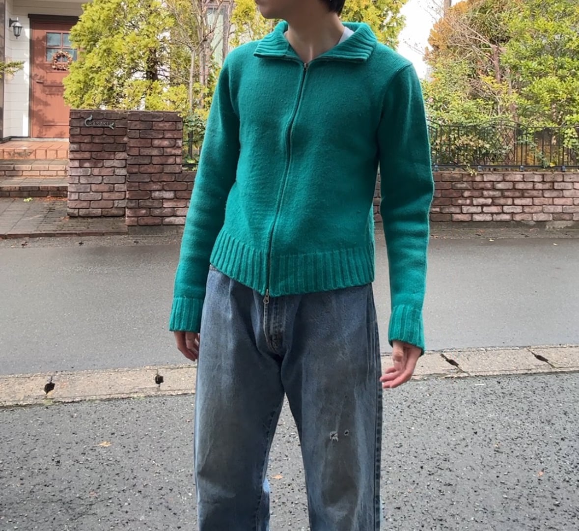 もう多分二度と出会えないであろう色のジップアップセーター。