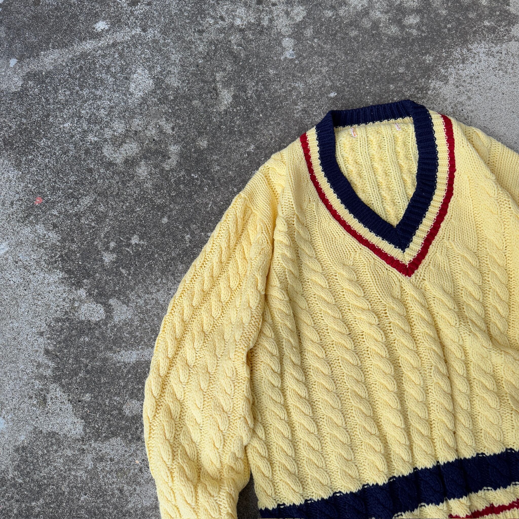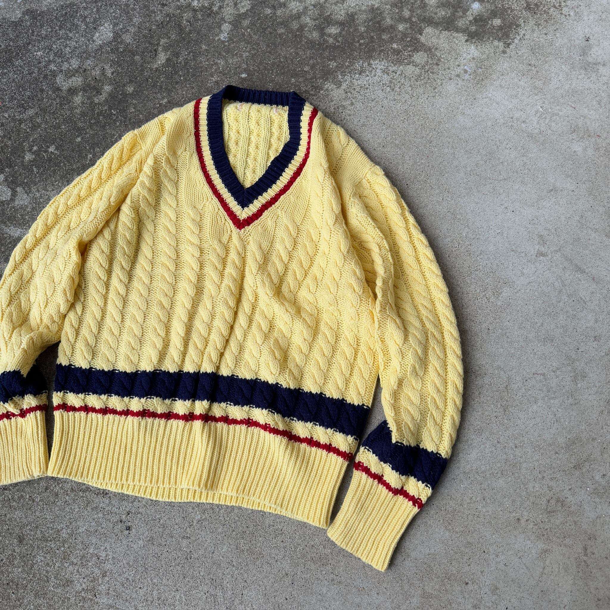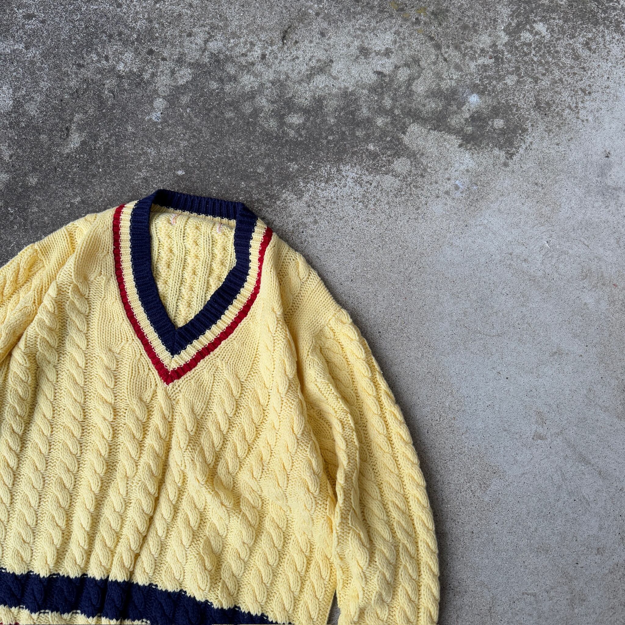 70s~ unknown Tilden cable knit sweater / 70年代 アンノウン チルデンニット "ケーブル"
