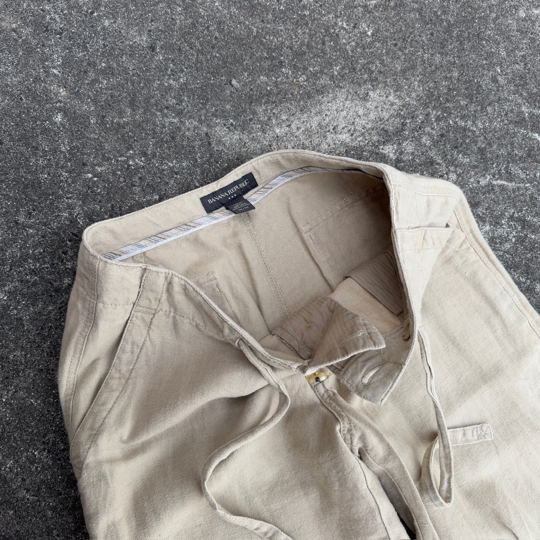 00s BANANA REPUBRIC cotton×linen wide easy pants / 2000年代 "バナナリパブリック" コットン×リネン ワイドイージーパンツ