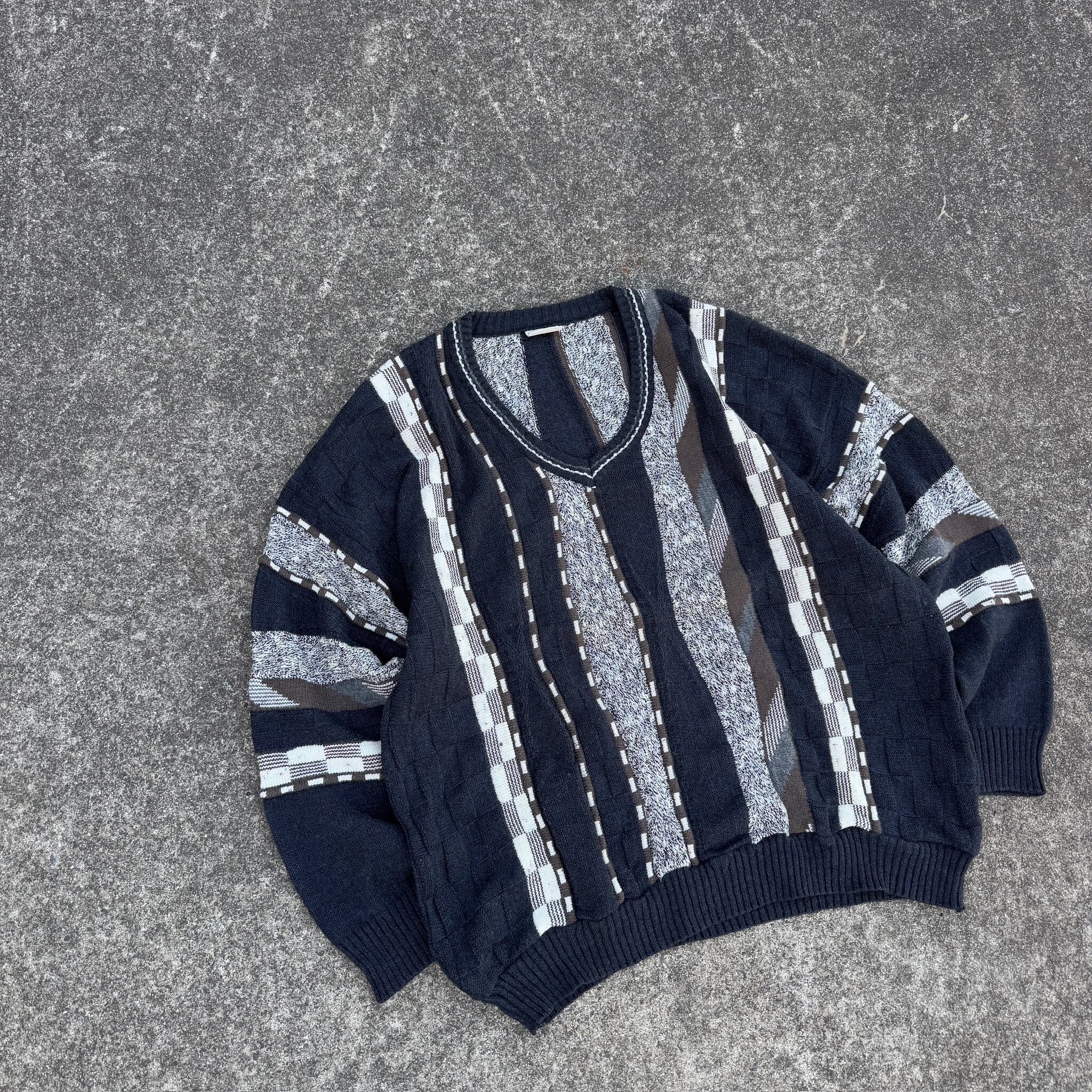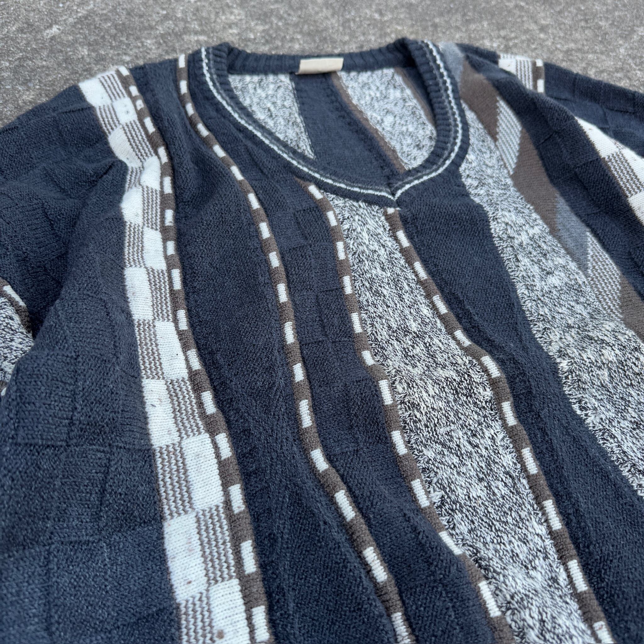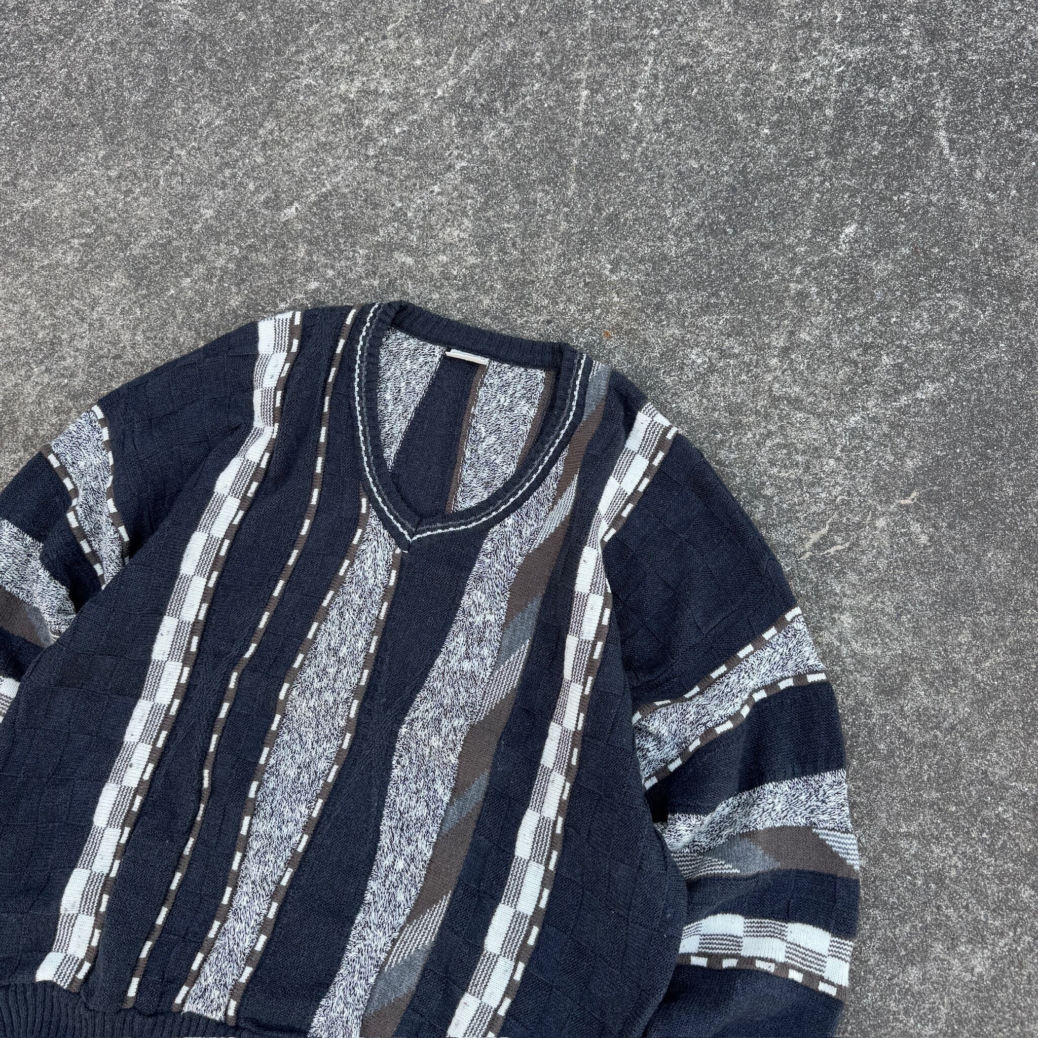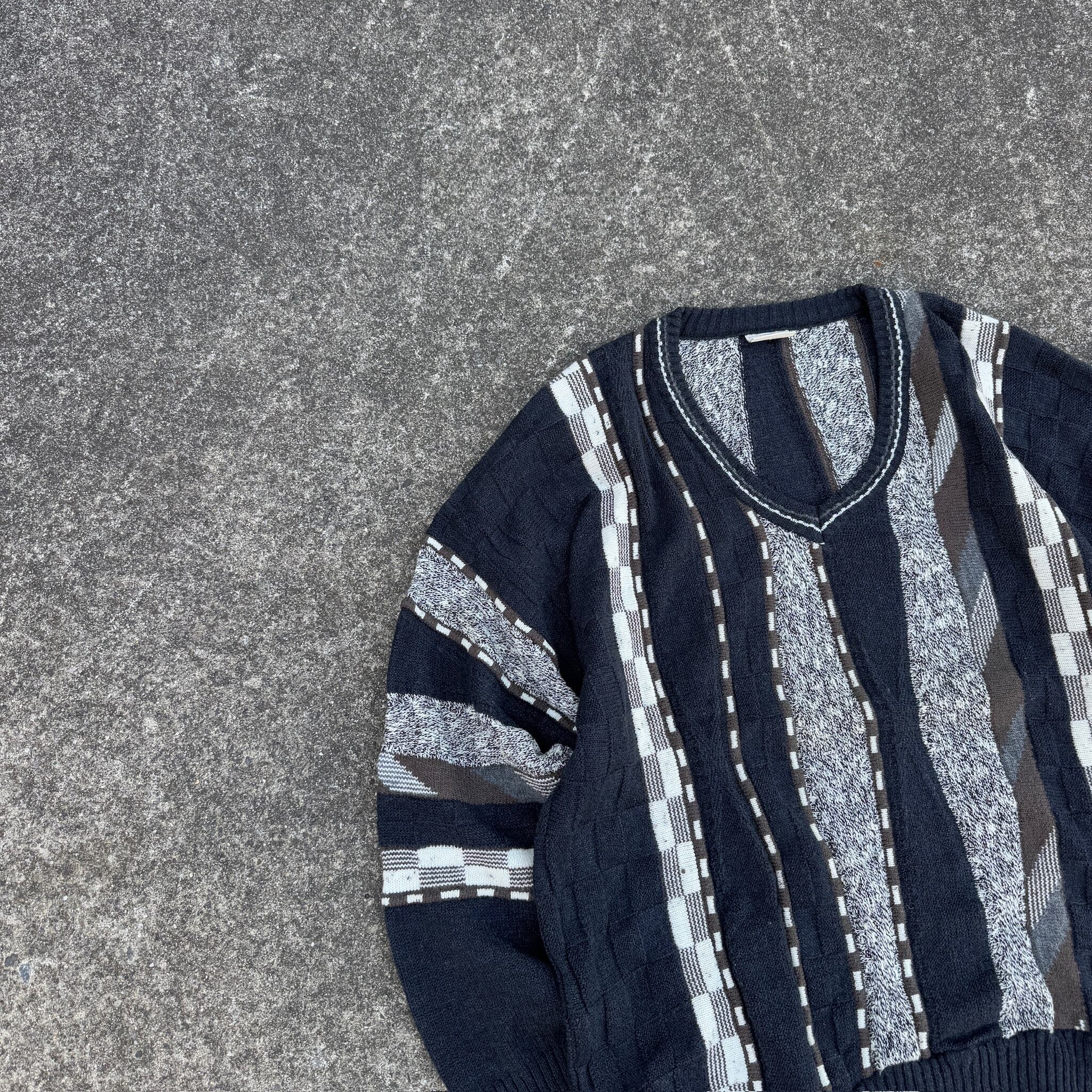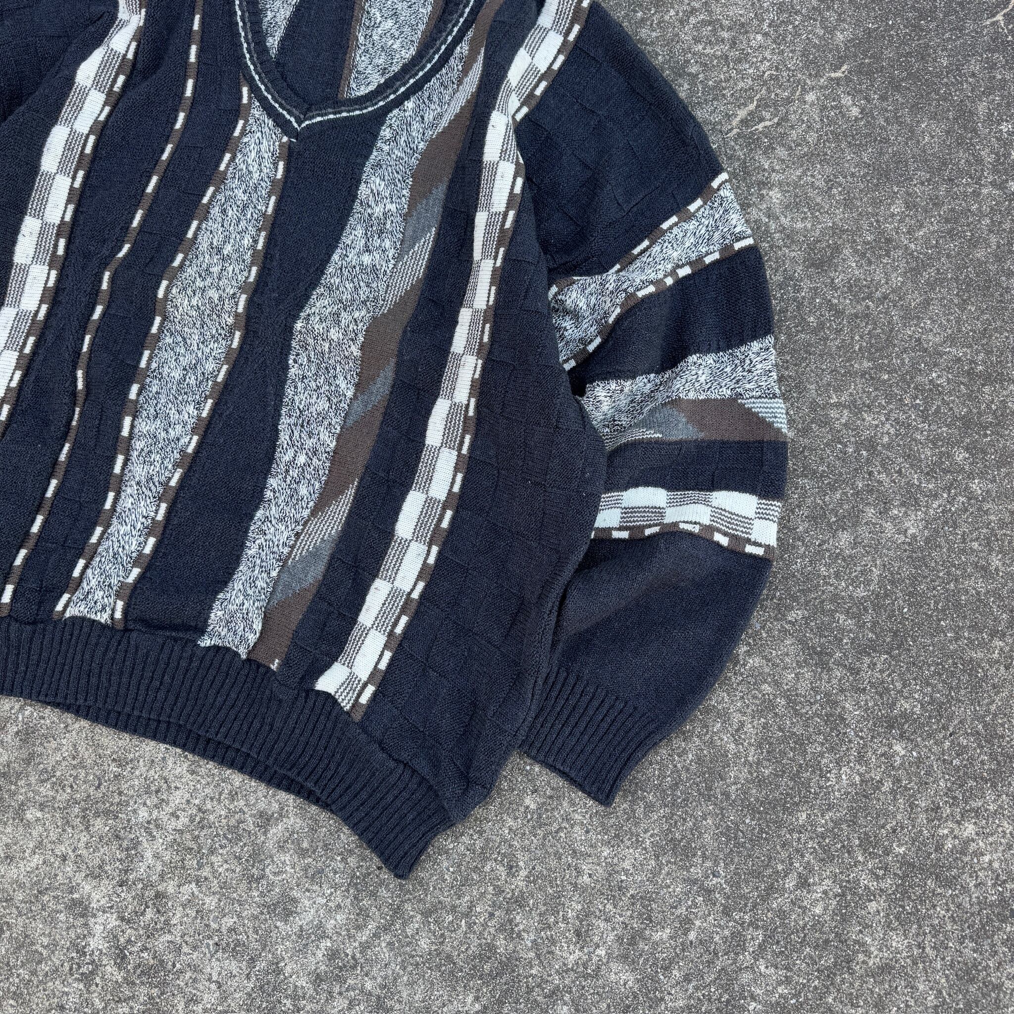 Made in Italy 1980s "SANDS" 3D knit sweater Vneck / イタリア製 1980年 ニット セーター Vネック